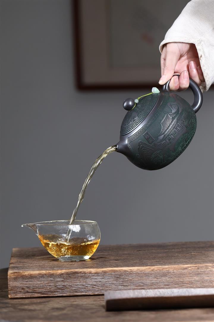 【泥料特點】砂土氣重,似淳實農民,日久使用,漸露鋒芒,養成變化,溫潤莊重。紫砂是壹種雙重氣孔結構的多孔性材質,氣孔微細,密度高。用紫砂壺沏茶,不失原味,且香不渙散,得茶之真香真味。紫砂使用越久,壺身色澤越發光亮照人,氣韻溫雅。紫砂壺長久使用器身會因撫摸擦拭,變得越發溫潤光澤。