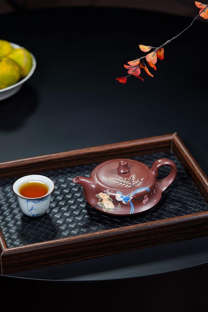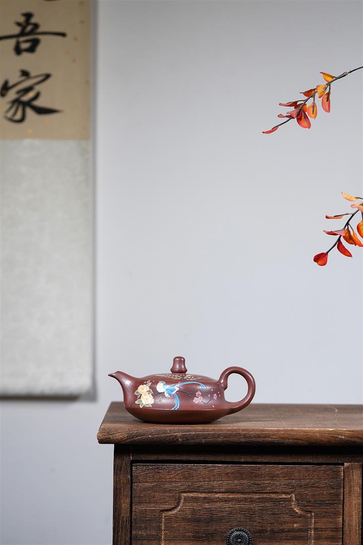 原礦大紅袍荷花龍蛋手工泥繪泡茶壺280cc POT3249
