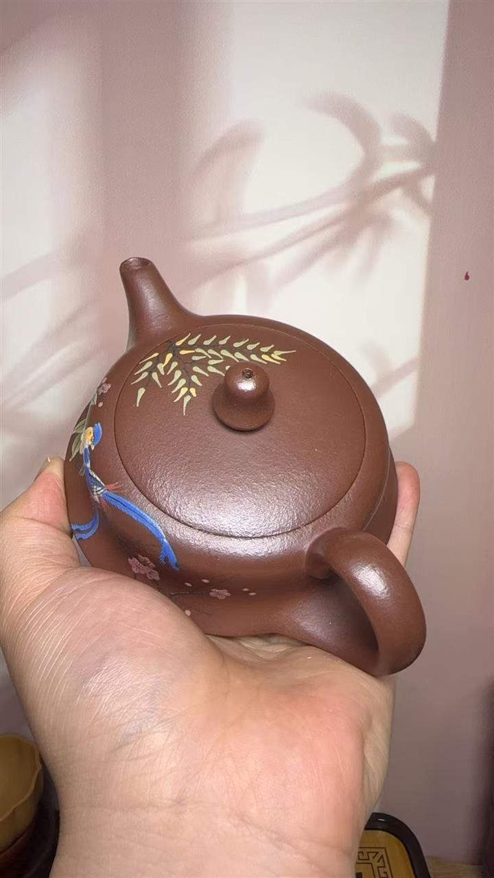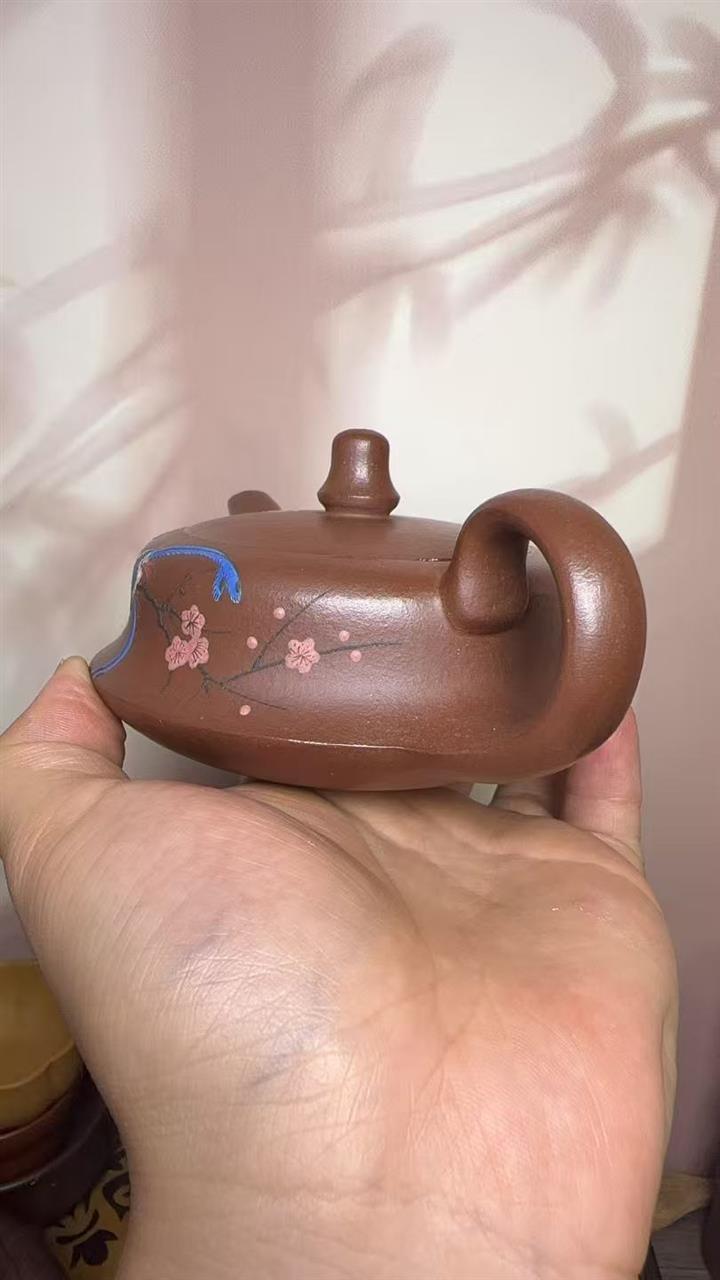 200cc原礦紫泥手制彩繪曲壺茶壺POT8438