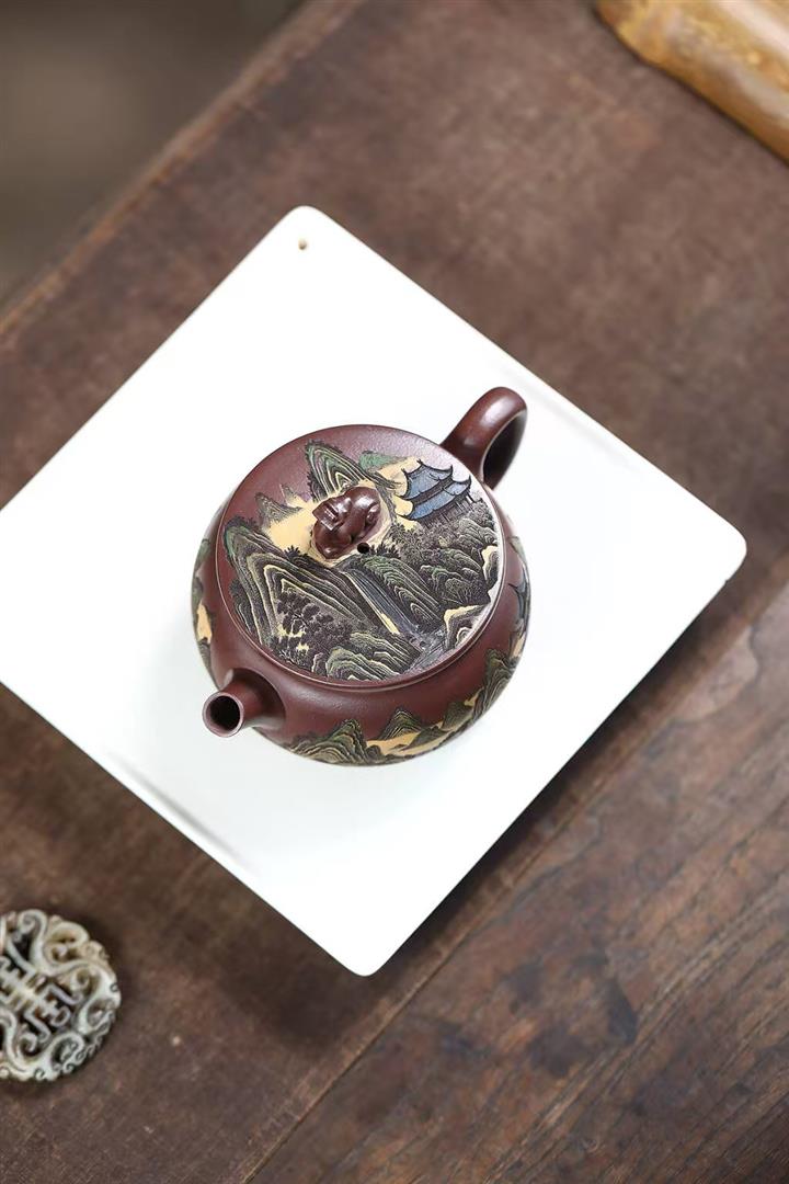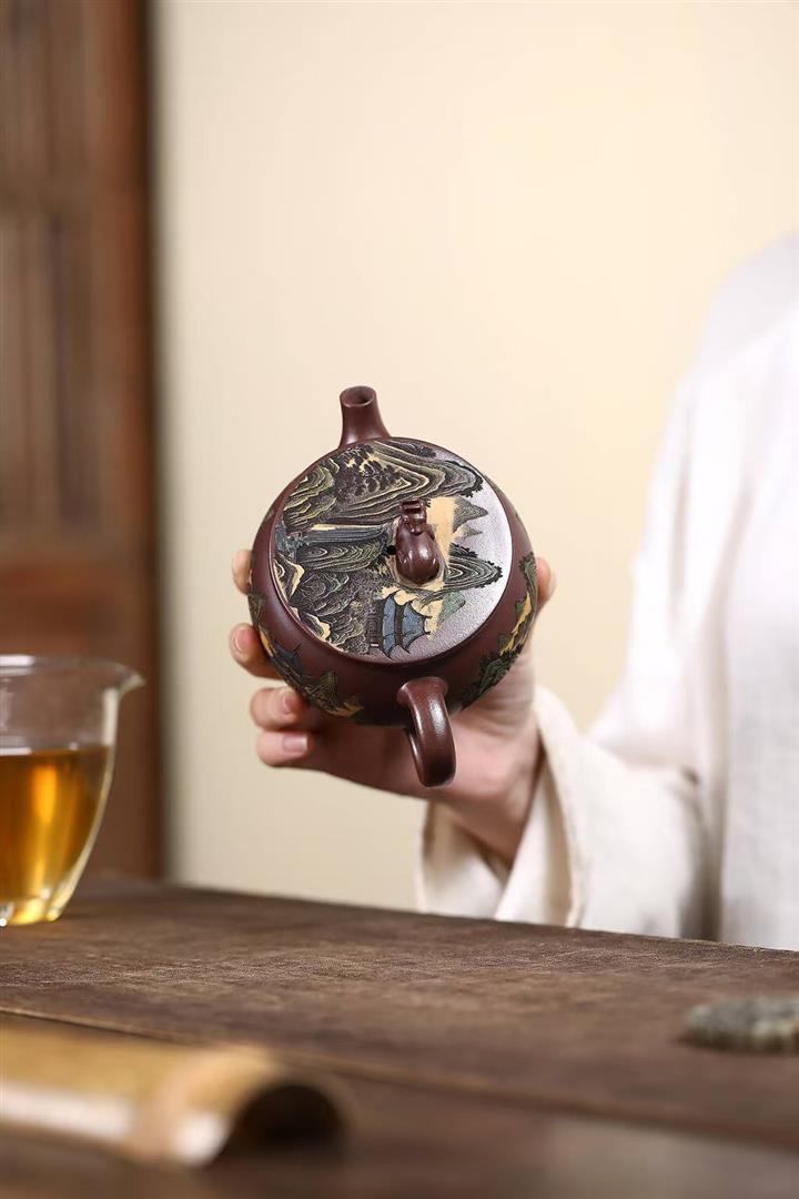 辛·高溫段泥觀山虛扁紫砂壺POT6151