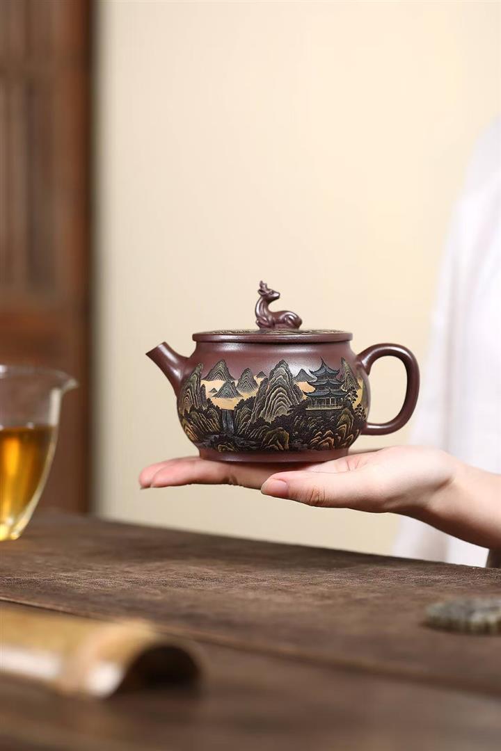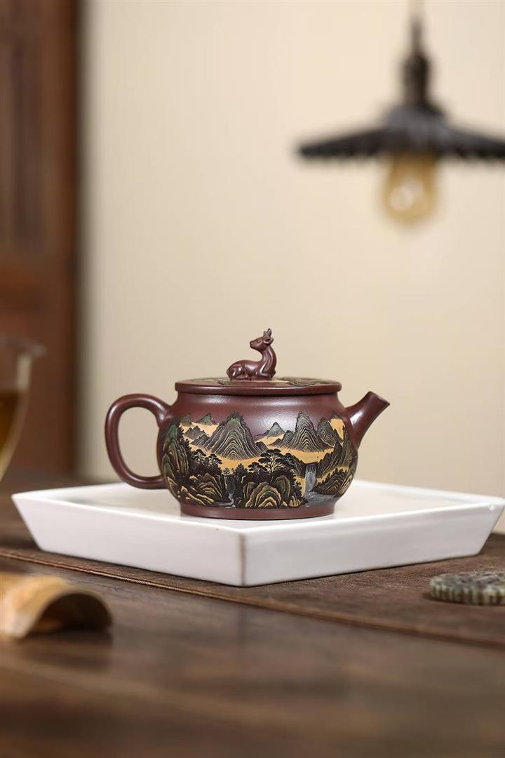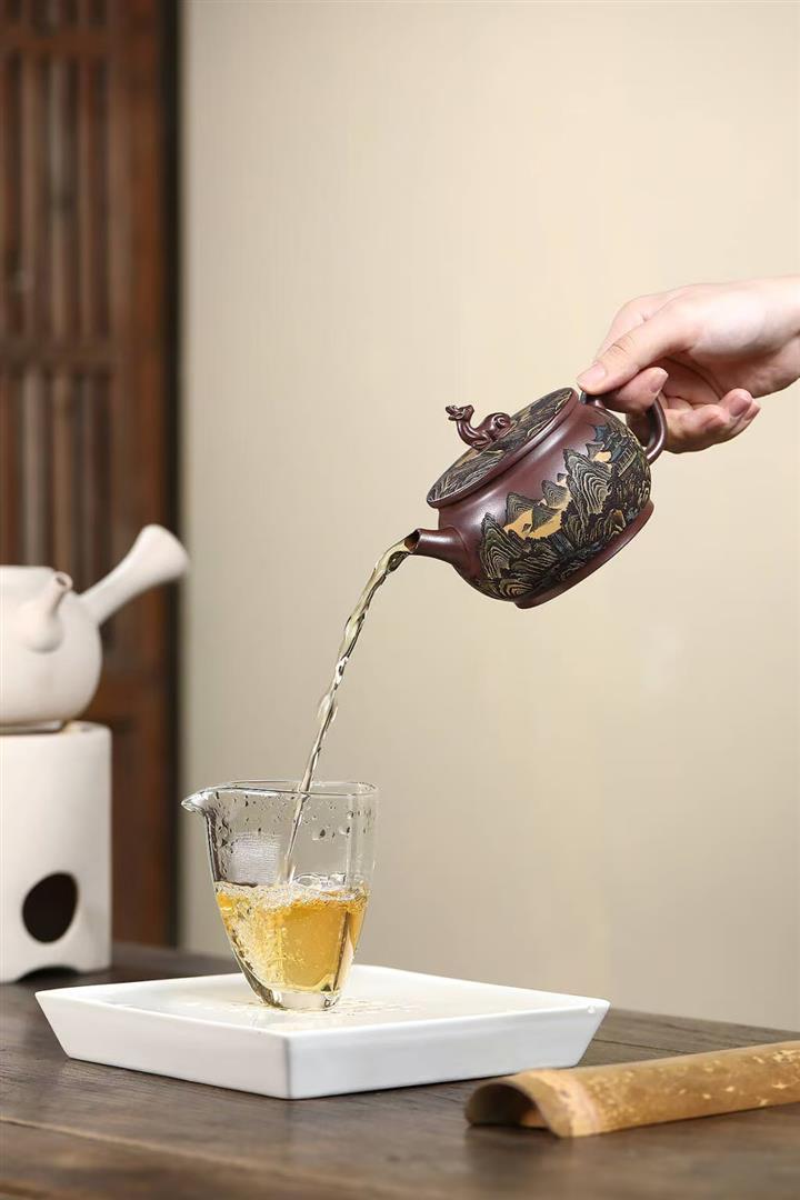 【作品介紹】此款壺形線條流暢,壺把,壺嘴,壺身壹氣呵成栩栩如生,是收藏把玩的好壺,泥料色澤古樸典雅,日久使用,漸露鋒芒,養成變化快,溫潤莊重,用其泡茶,使用的年代久,壺身就溫潤,泡出來的茶湯也就醇郁芳馨。