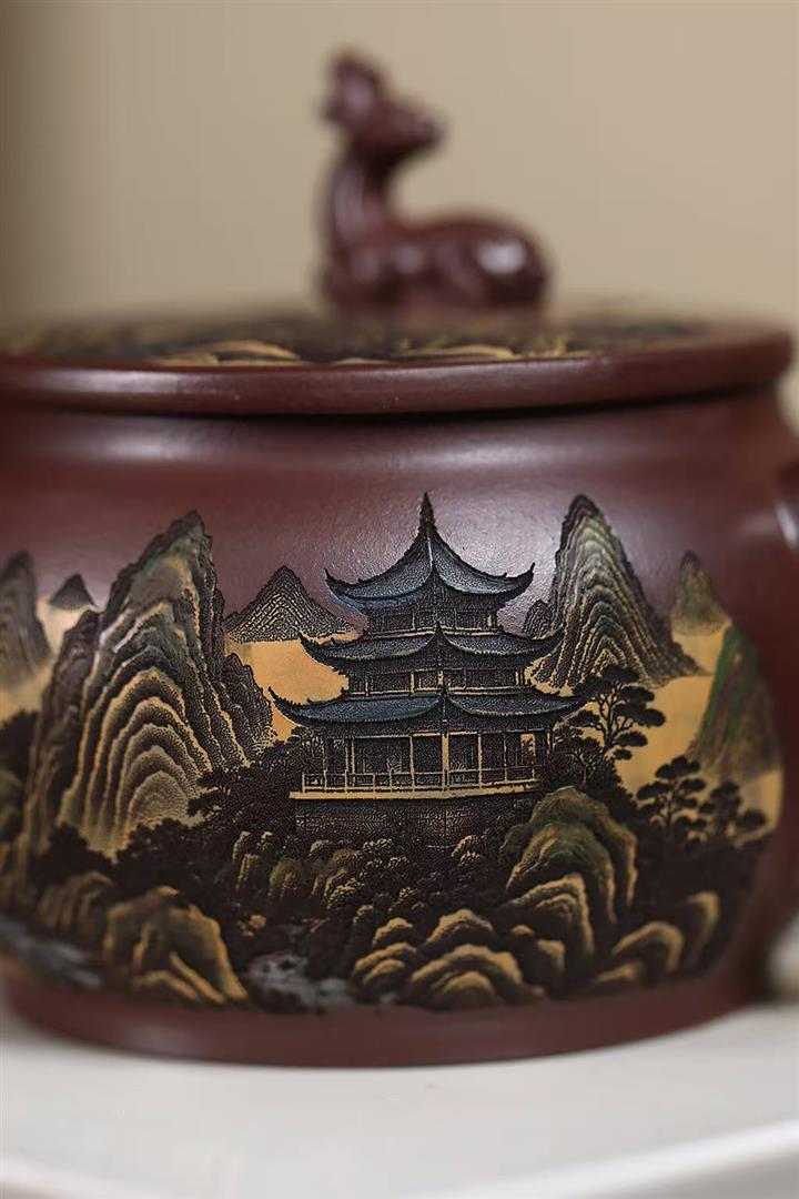 辛·原礦黑泥堆繪秦權紫砂壺POT6147