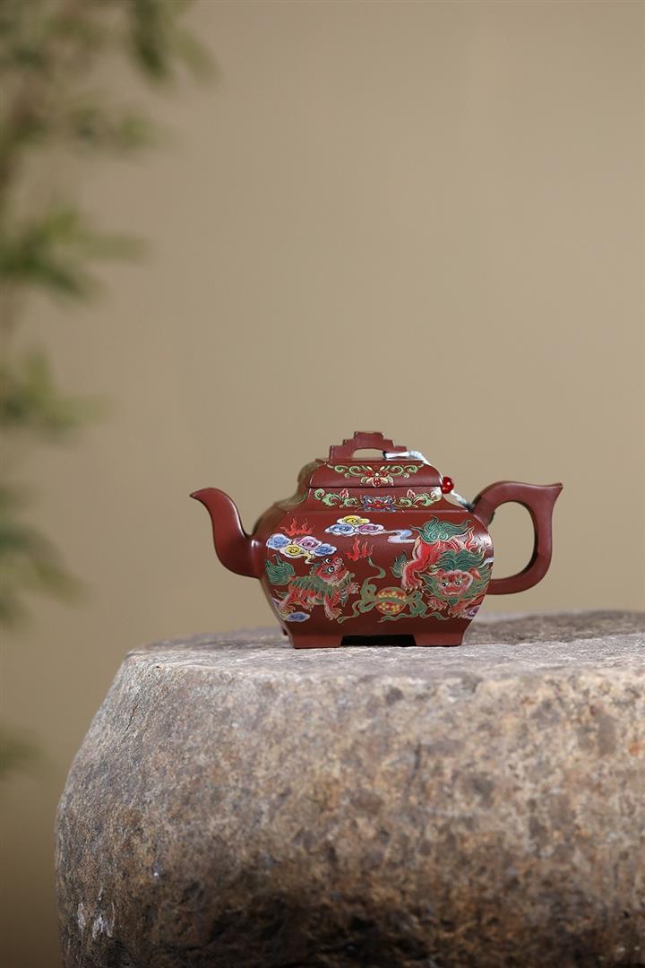 450cc原礦老紫泥琺瑯彩四方瑞獸壺POT8473
