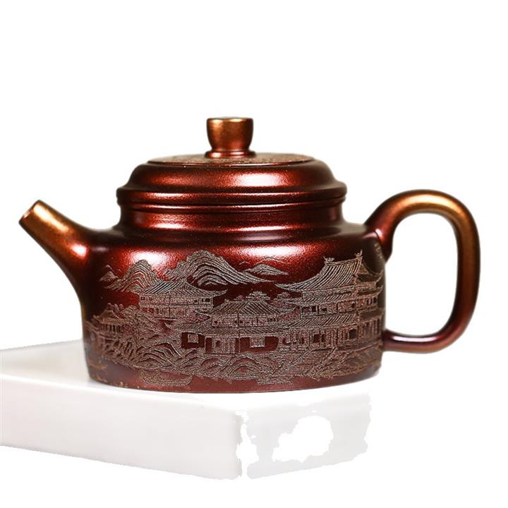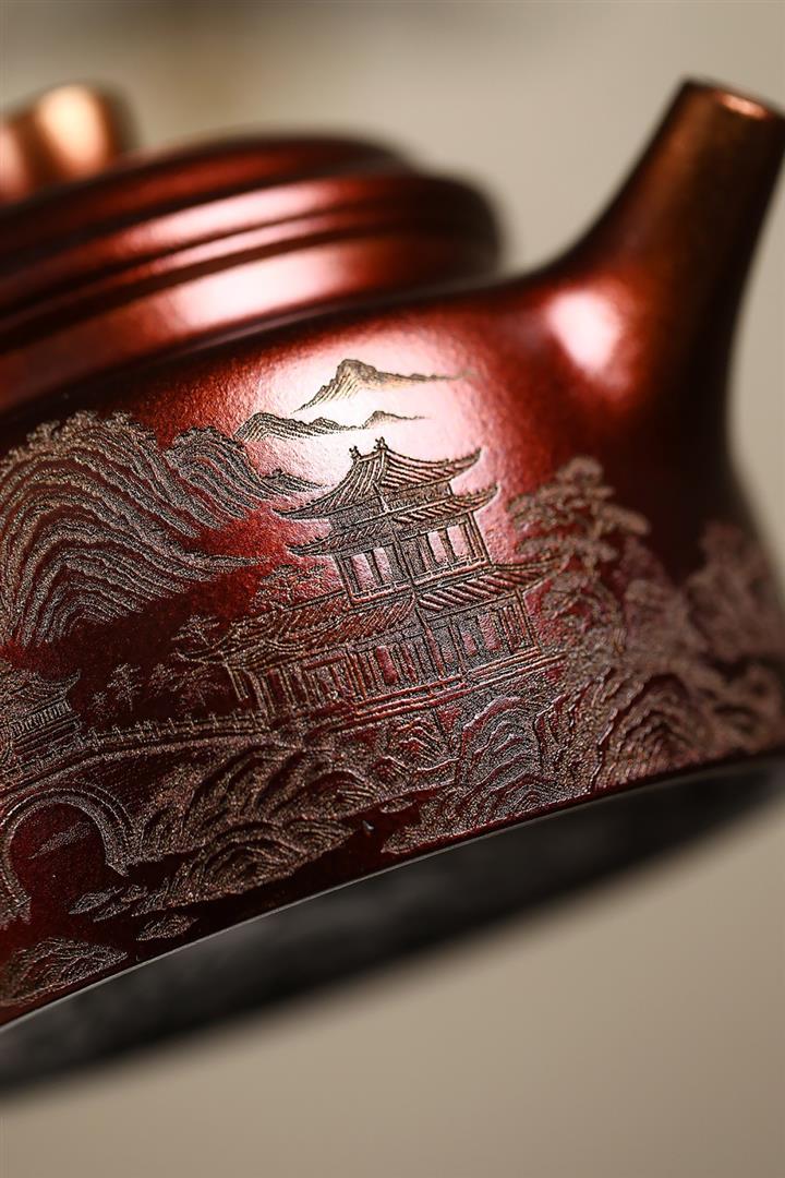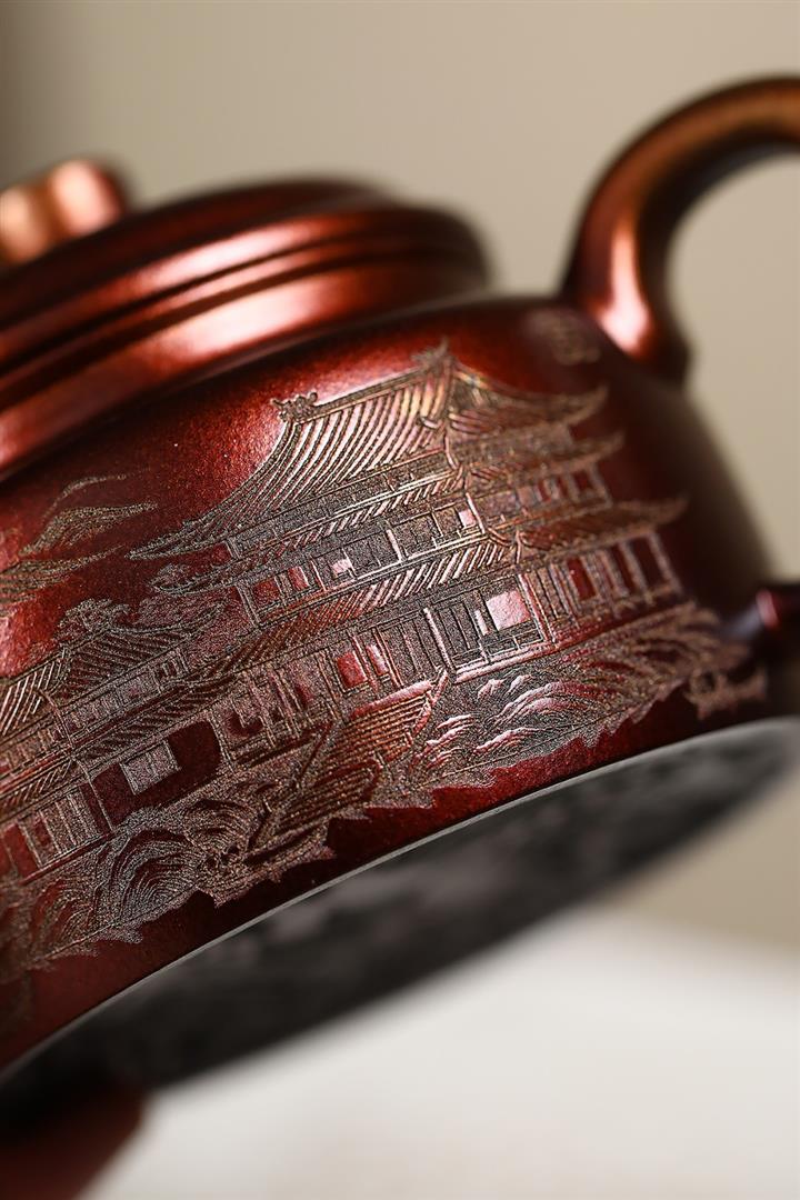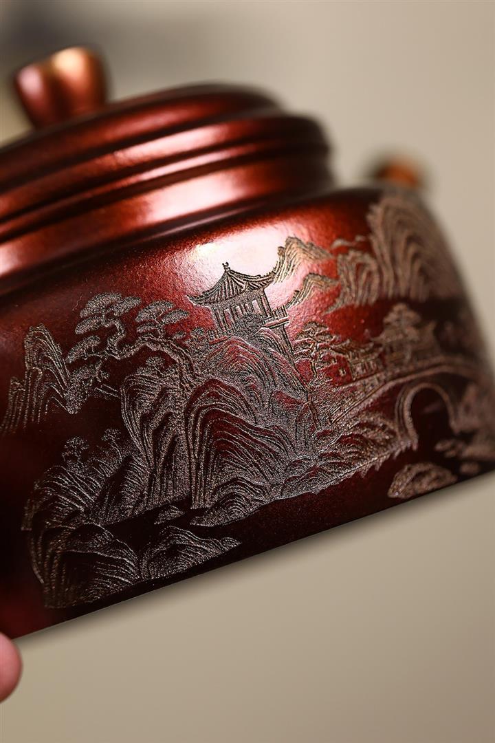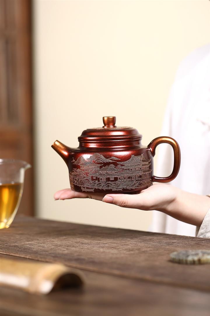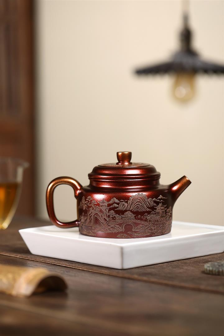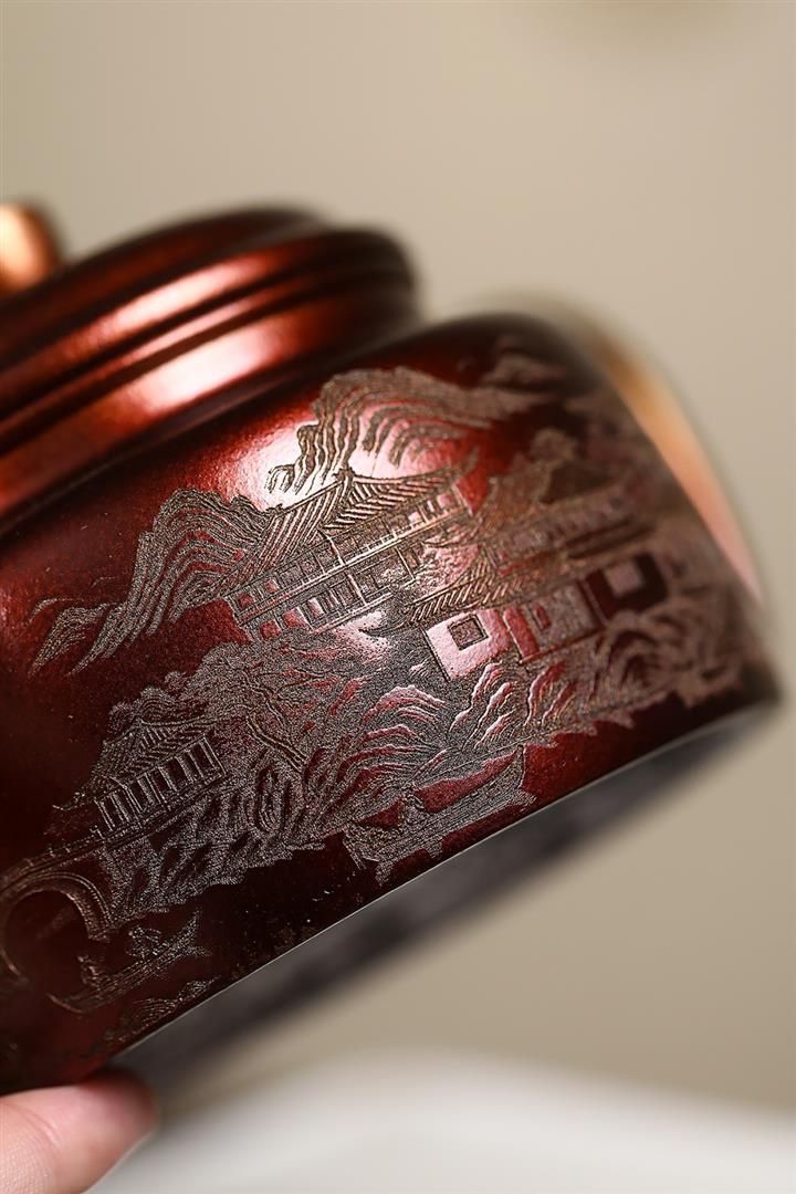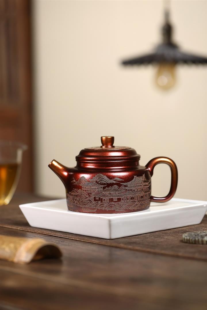 160cc原礦紅皮龍紫砂雙線竹鼓茶壺POT8318