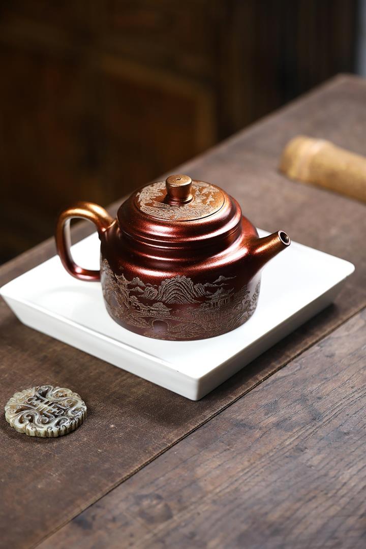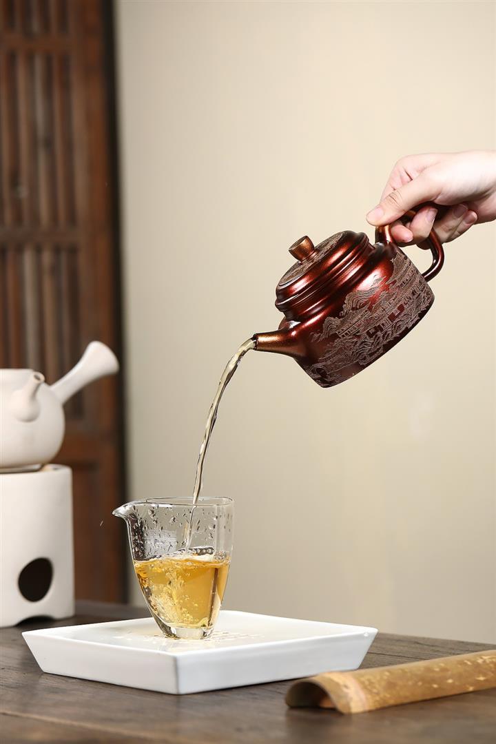 【泥料特點】砂土氣重,似淳實農民,日久使用,漸露鋒芒,養成變化,溫潤莊重。紫砂是壹種雙重氣孔結構的多孔性材質,氣孔微細,密度高。用紫砂壺沏茶,不失原味,且香不渙散,得茶之真香真味。紫砂使用越久,壺身色澤越發光亮照人,氣韻溫雅。紫砂壺長久使用器身會因撫摸擦拭,變得越發溫潤光澤。