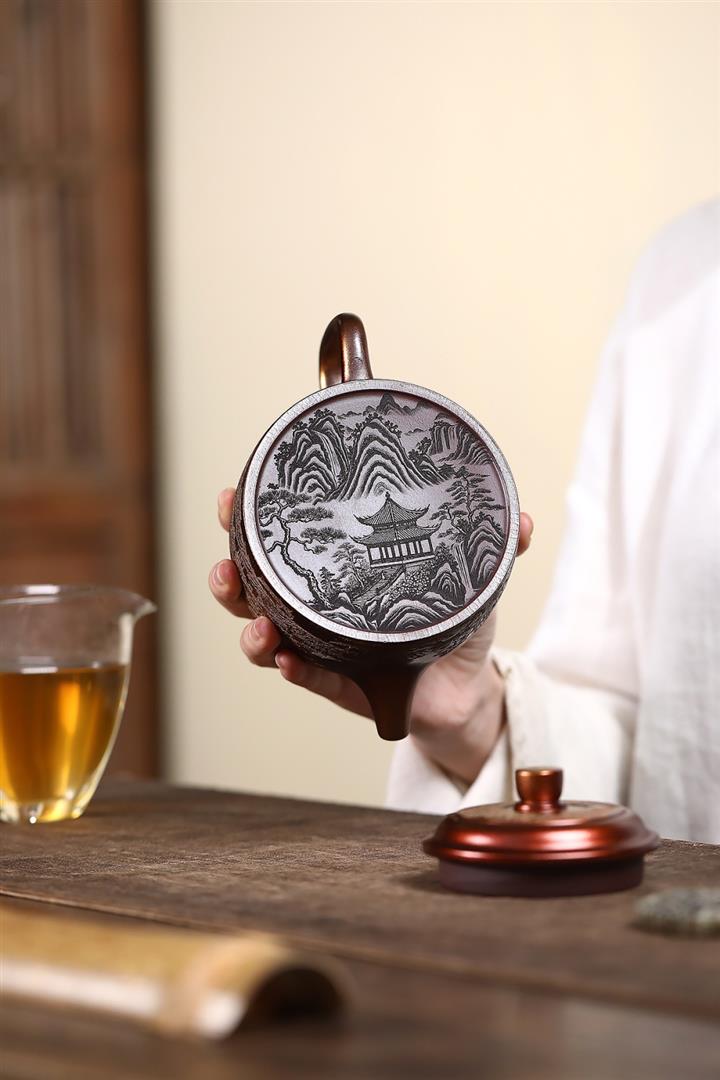 【作品介紹】此款壺形線條流暢,壺把,壺嘴,壺身壹氣呵成栩栩如生,是收藏把玩的好壺,泥料色澤古樸典雅,日久使用,漸露鋒芒,養成變化快,溫潤莊重,用其泡茶,使用的年代久,壺身就溫潤,泡出來的茶湯也就醇郁芳馨。