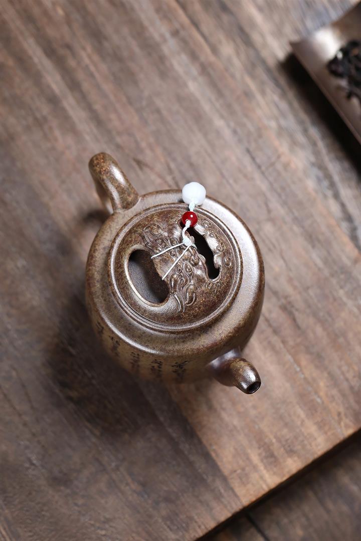 【泥料特點】砂土氣重,似淳實農民,日久使用,漸露鋒芒,養成變化,溫潤莊重。紫砂是壹種雙重氣孔結構的多孔性材質,氣孔微細,密度高。用紫砂壺沏茶,不失原味,且香不渙散,得茶之真香真味。紫砂使用越久,壺身色澤越發光亮照人,氣韻溫雅。紫砂壺長久使用器身會因撫摸擦拭,變得越發溫潤光澤。