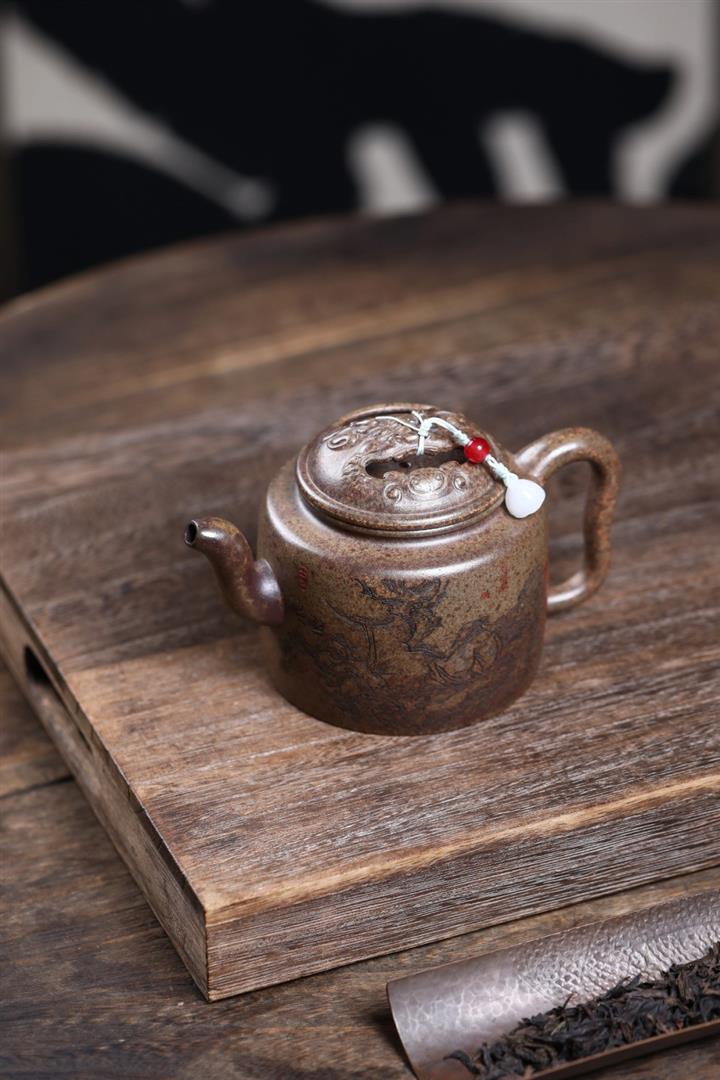 【作品介紹】此款壺形線條流暢,壺把,壺嘴,壺身壹氣呵成栩栩如生,是收藏把玩的好壺,泥料色澤古樸典雅,日久使用,漸露鋒芒,養成變化快,溫潤莊重,用其泡茶,使用的年代久,壺身就溫潤,泡出來的茶湯也就醇郁芳馨。