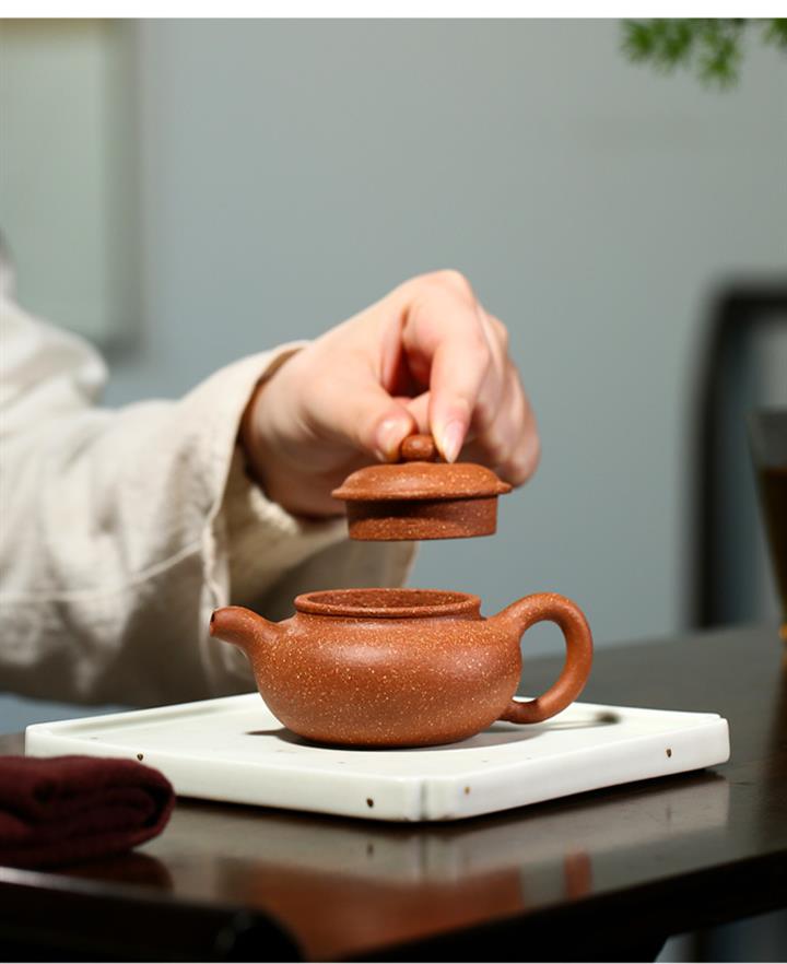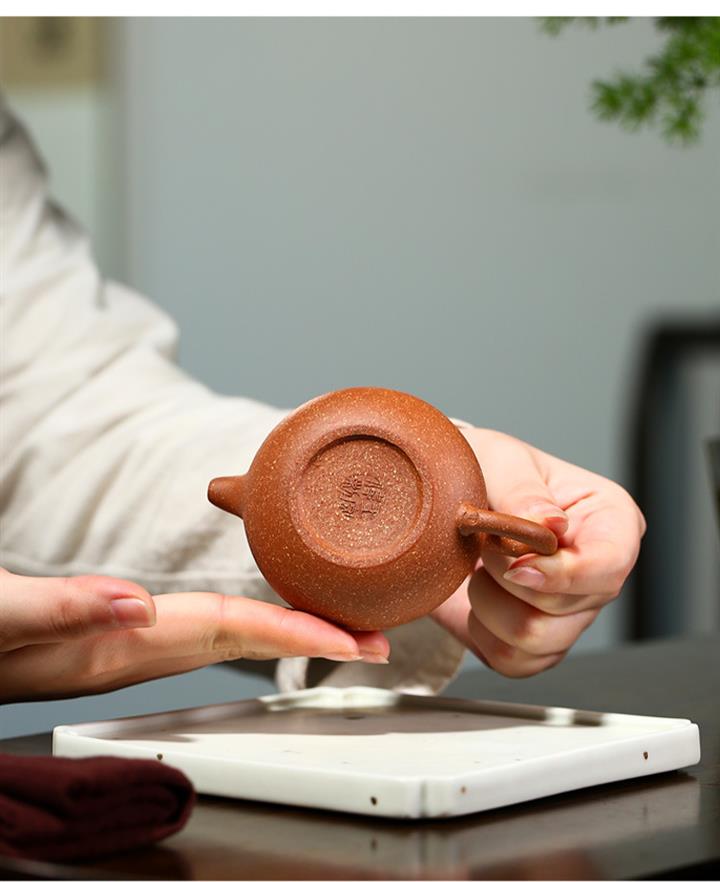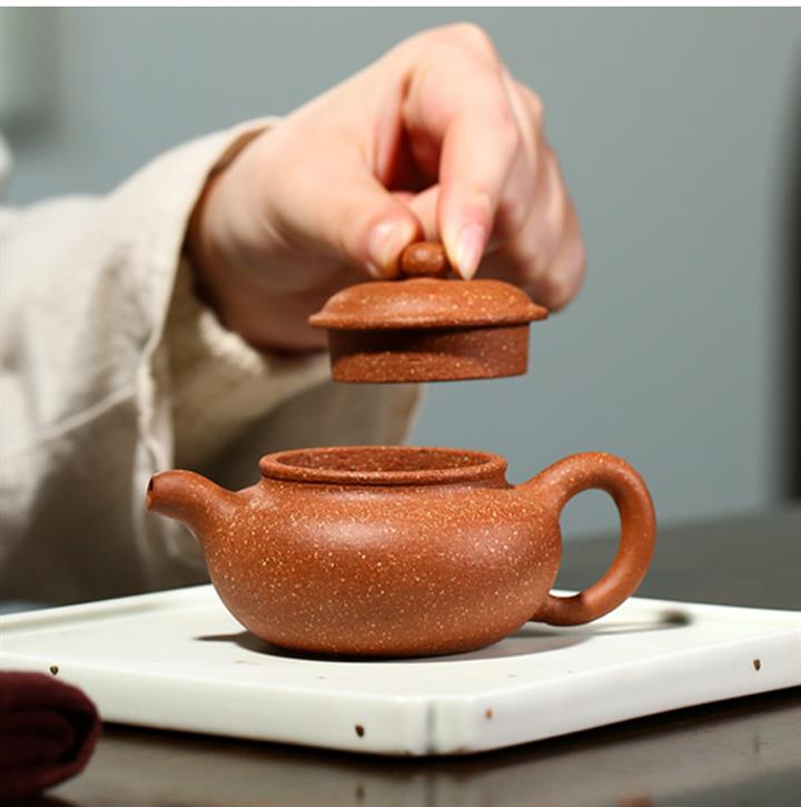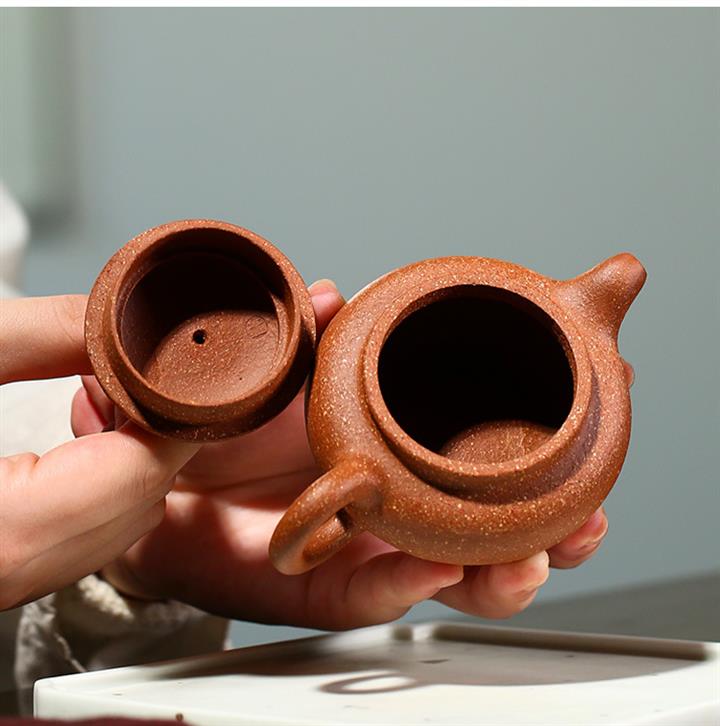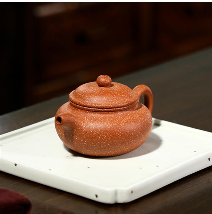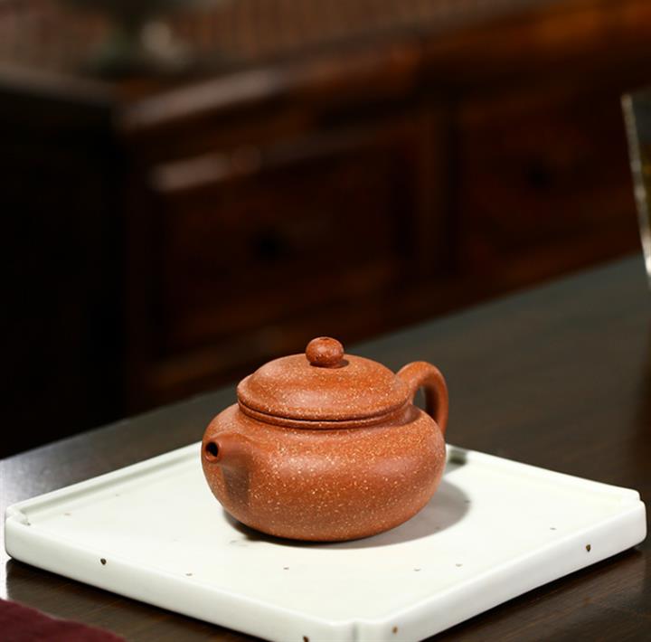 【泥料特點】砂土氣重,似淳實農民,日久使用,漸露鋒芒,養成變化,溫潤莊重。紫砂是壹種雙重氣孔結構的多孔性材質,氣孔微細,密度高。用紫砂壺沏茶,不失原味,且香不渙散,得茶之真香真味。紫砂使用越久,壺身色澤越發光亮照人,氣韻溫雅。紫砂壺長久使用器身會因撫摸擦拭,變得越發溫潤光澤。