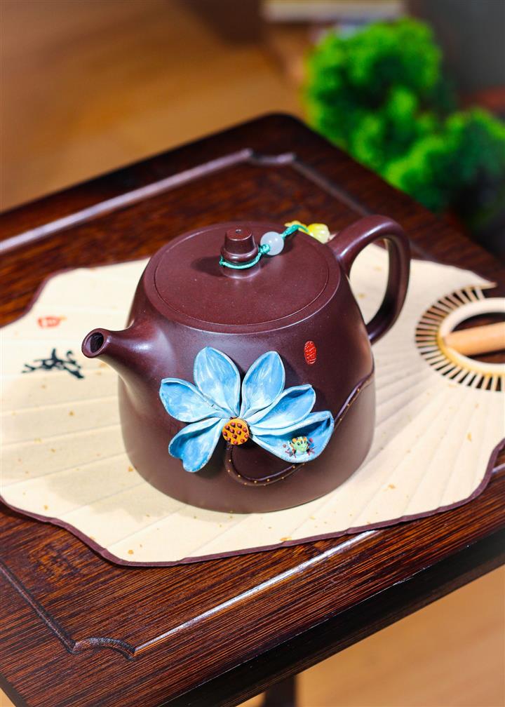 【泥料特點】砂土氣重,似淳實農民,日久使用,漸露鋒芒,養成變化,溫潤莊重。紫砂是壹種雙重氣孔結構的多孔性材質,氣孔微細,密度高。用紫砂壺沏茶,不失原味,且香不渙散,得茶之真香真味。紫砂使用越久,壺身色澤越發光亮照人,氣韻溫雅。紫砂壺長久使用器身會因撫摸擦拭,變得越發溫潤光澤。