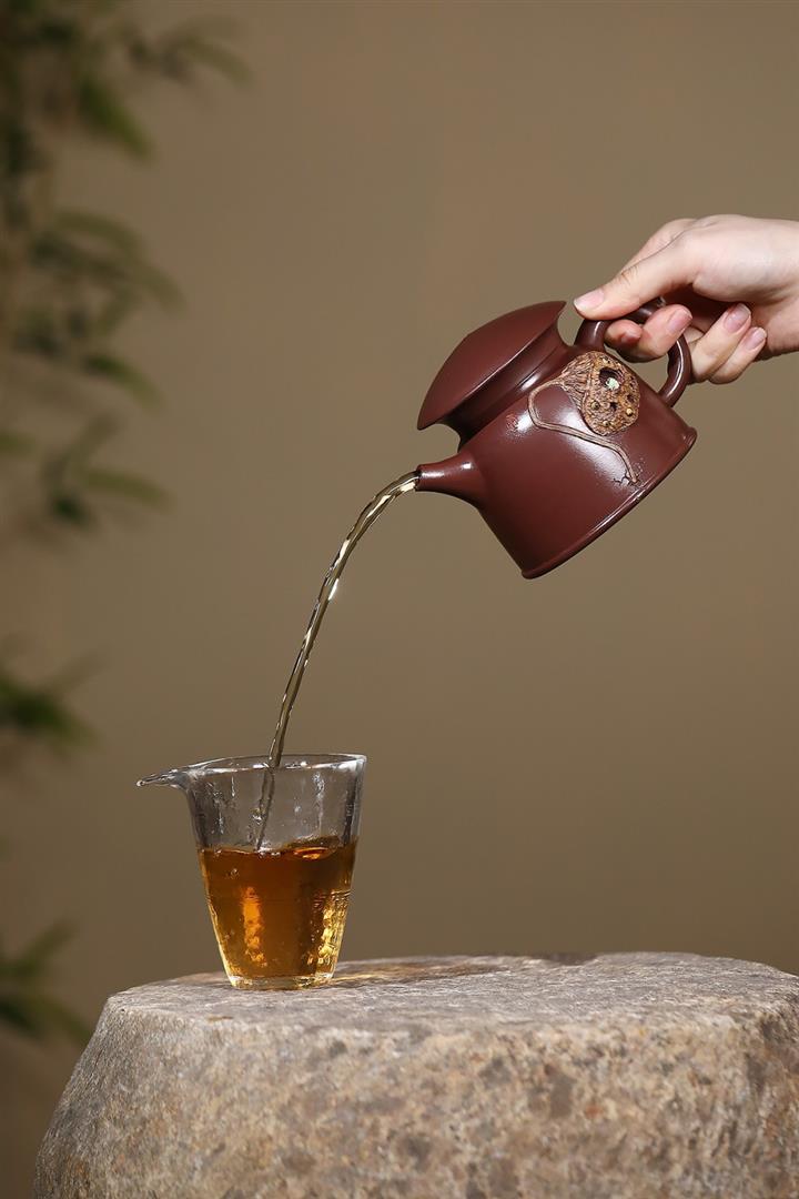【泥料特點】砂土氣重,似淳實農民,日久使用,漸露鋒芒,養成變化,溫潤莊重。紫砂是壹種雙重氣孔結構的多孔性材質,氣孔微細,密度高。用紫砂壺沏茶,不失原味,且香不渙散,得茶之真香真味。紫砂使用越久,壺身色澤越發光亮照人,氣韻溫雅。紫砂壺長久使用器身會因撫摸擦拭,變得越發溫潤光澤。