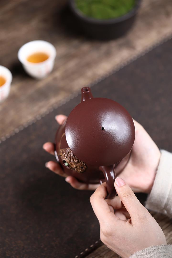 320cc原礦紅皮龍刻繪山水秦權泡茶壺POT8411
