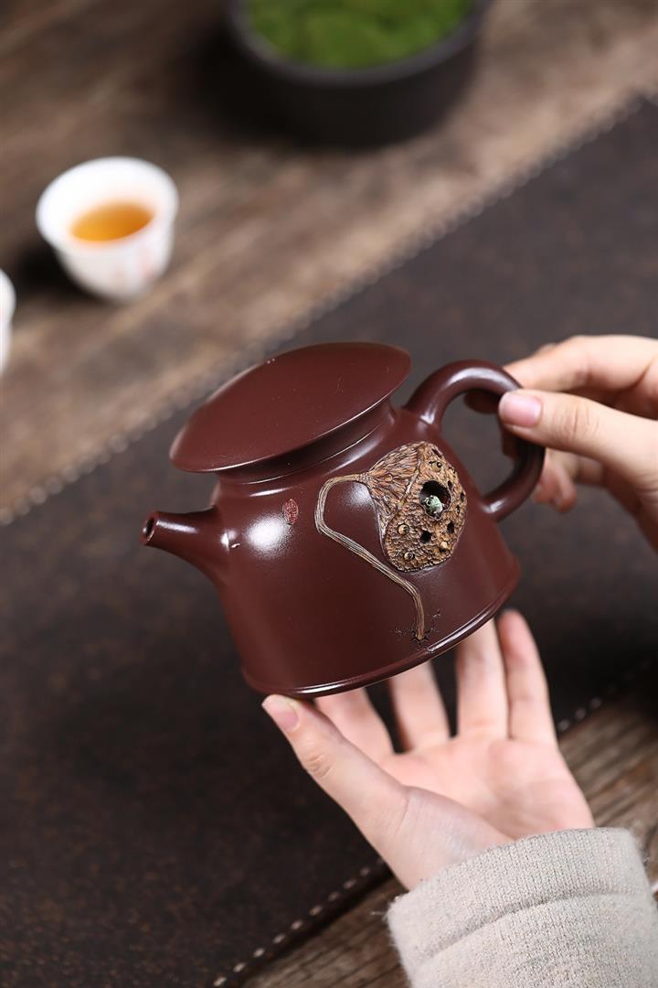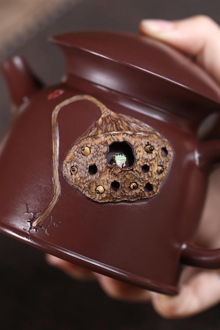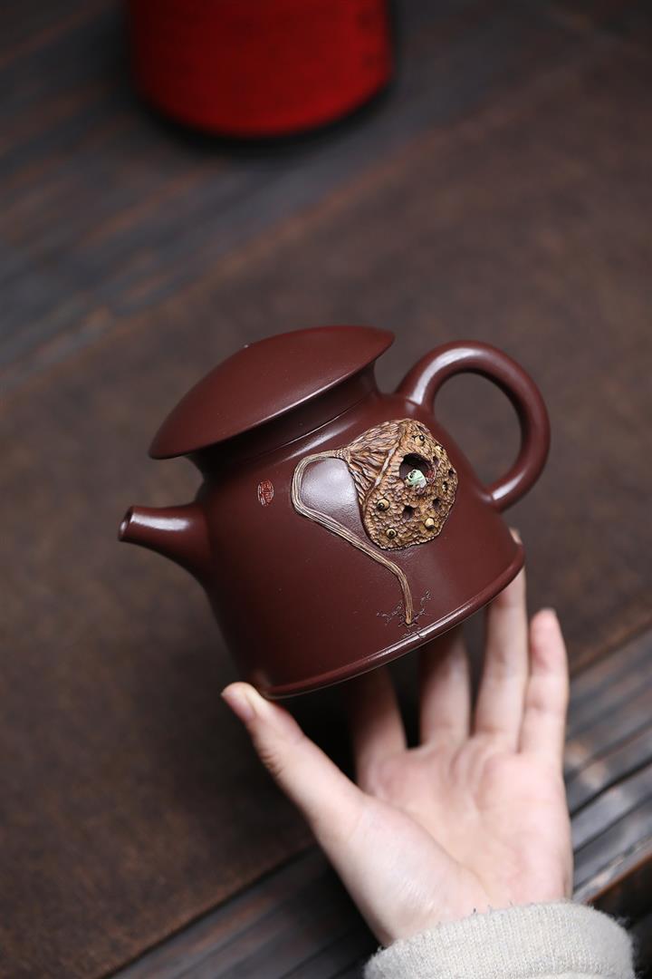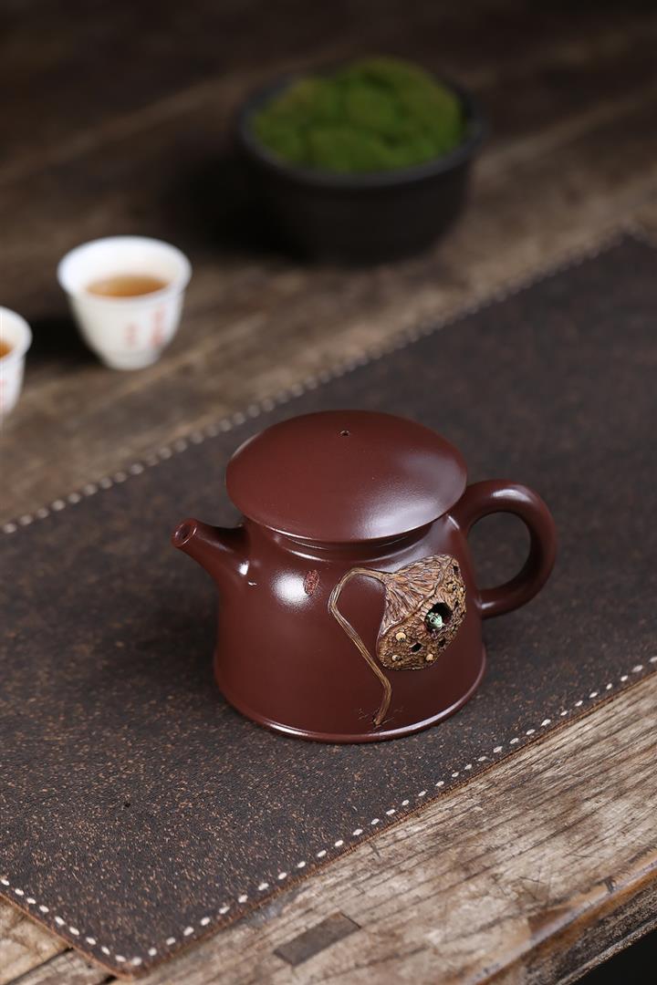 260cc原礦紅皮龍泥繪荷塘清韻寶塔茶壺POT8412