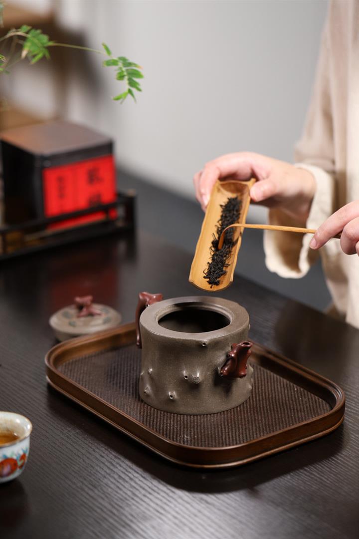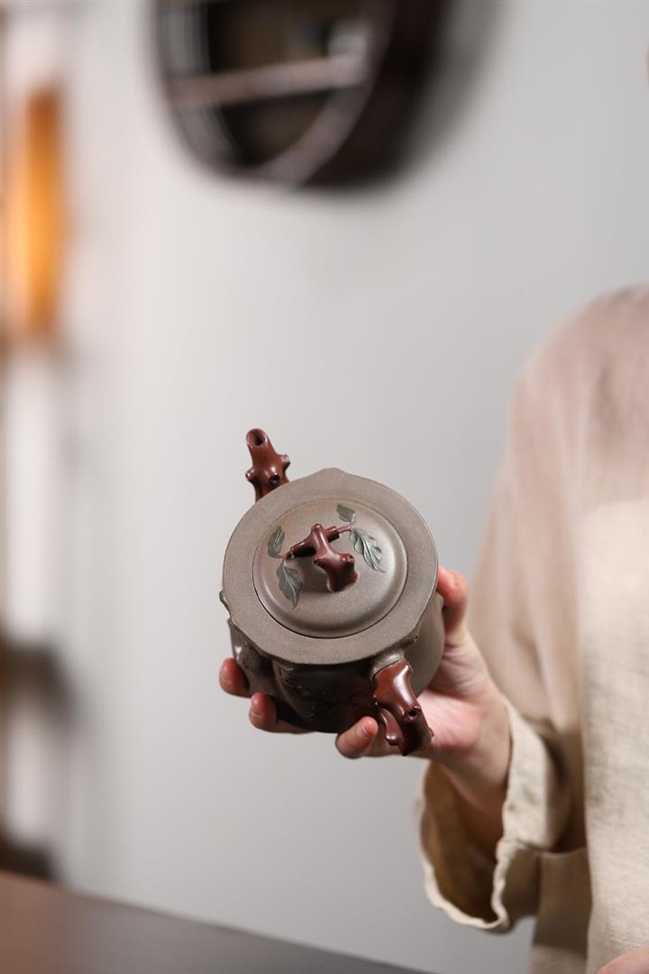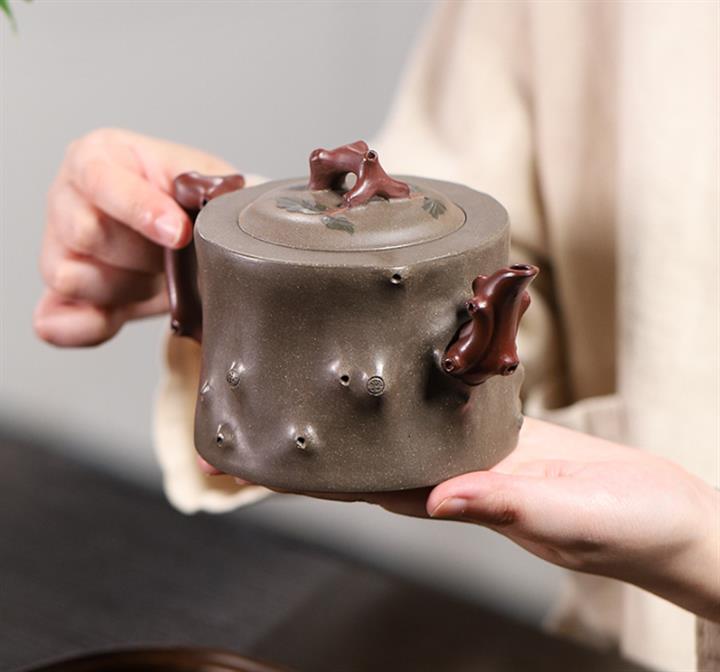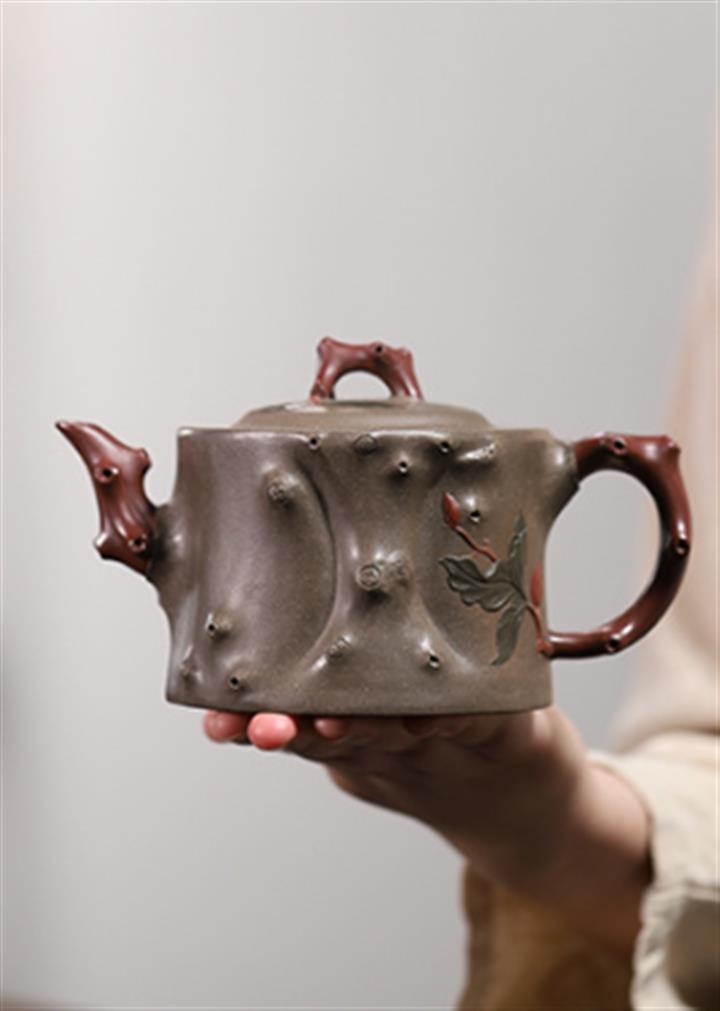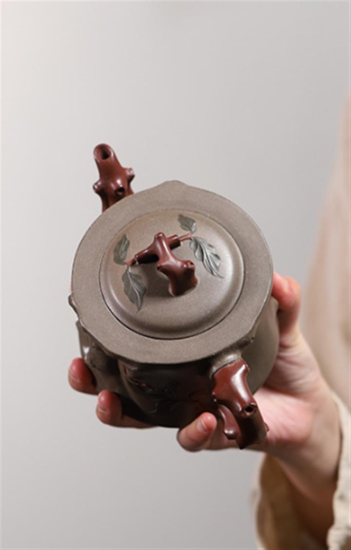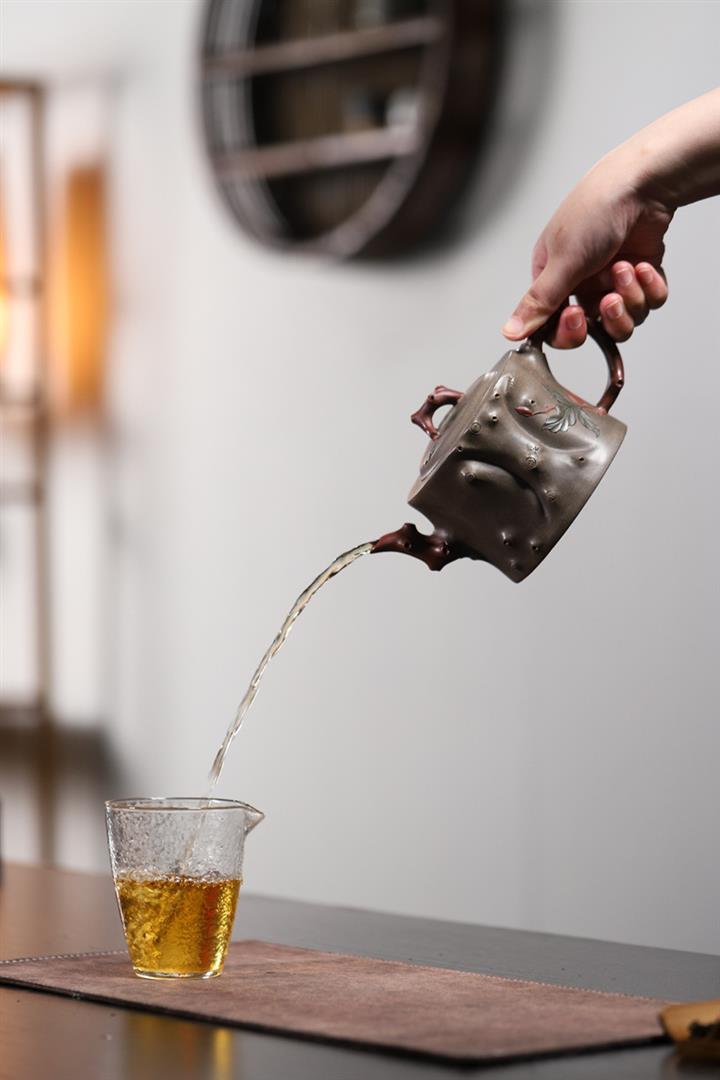 【泥料特點】砂土氣重,似淳實農民,日久使用,漸露鋒芒,養成變化,溫潤莊重。紫砂是壹種雙重氣孔結構的多孔性材質,氣孔微細,密度高。用紫砂壺沏茶,不失原味,且香不渙散,得茶之真香真味。紫砂使用越久,壺身色澤越發光亮照人,氣韻溫雅。紫砂壺長久使用器身會因撫摸擦拭,變得越發溫潤光澤。