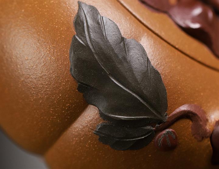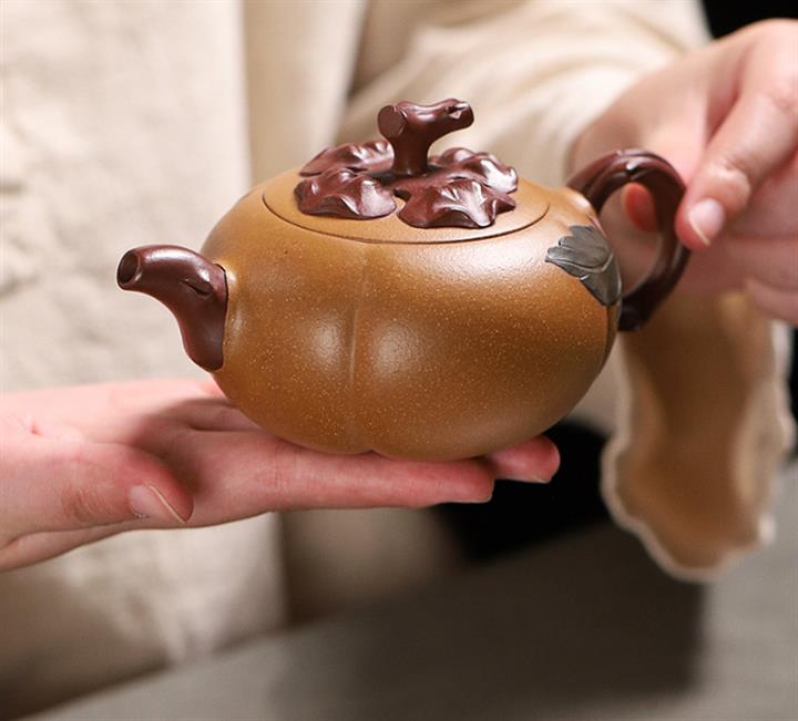 【泥料特點】砂土氣重,似淳實農民,日久使用,漸露鋒芒,養成變化,溫潤莊重。紫砂是壹種雙重氣孔結構的多孔性材質,氣孔微細,密度高。用紫砂壺沏茶,不失原味,且香不渙散,得茶之真香真味。紫砂使用越久,壺身色澤越發光亮照人,氣韻溫雅。紫砂壺長久使用器身會因撫摸擦拭,變得越發溫潤光澤。