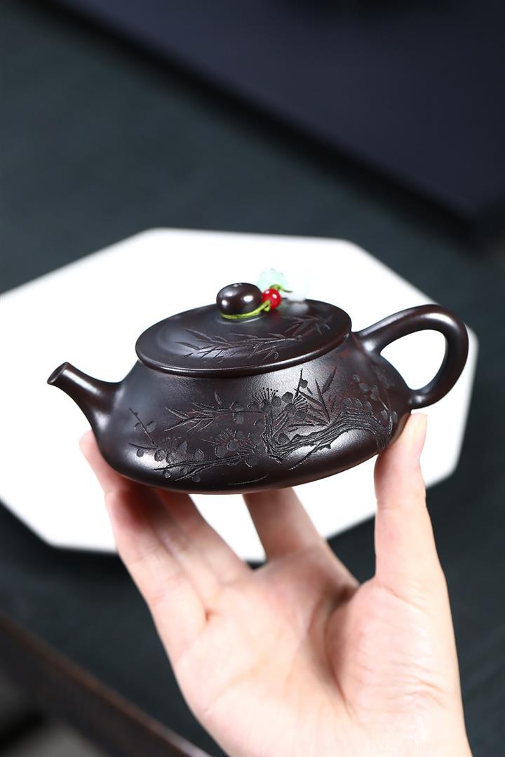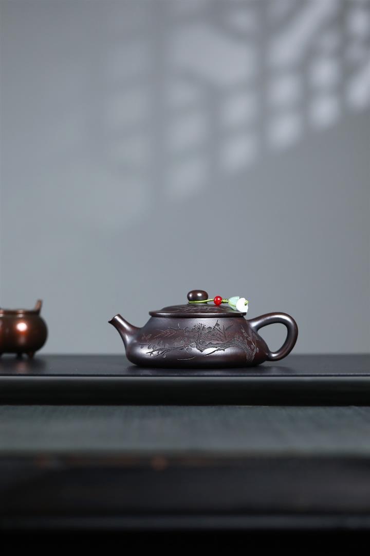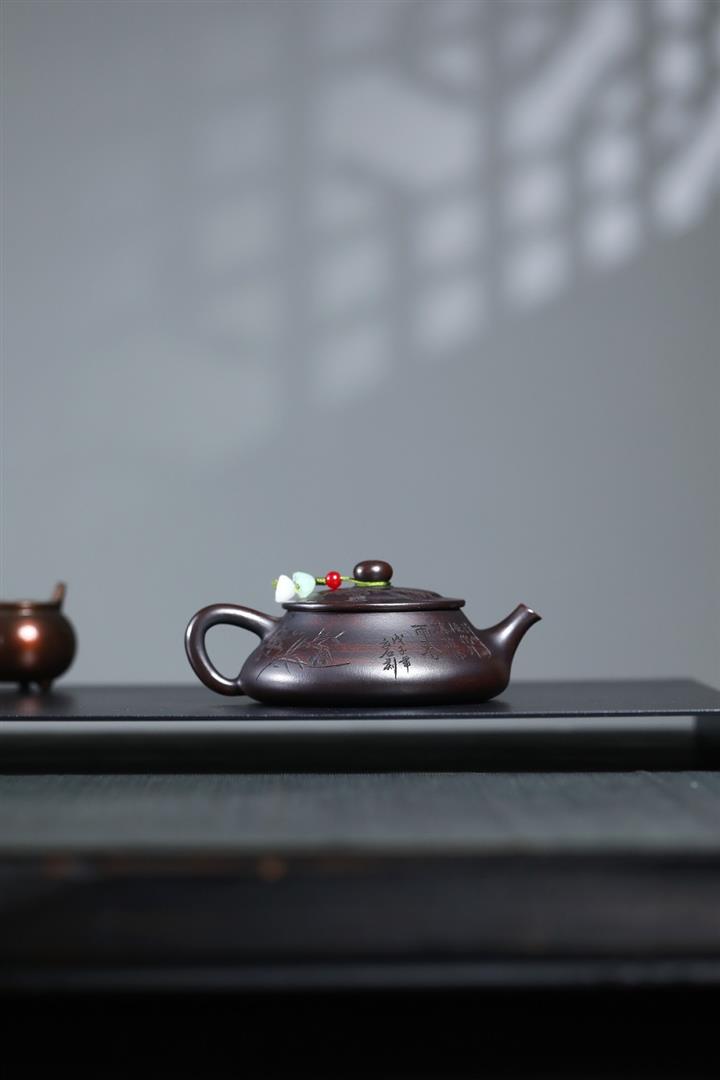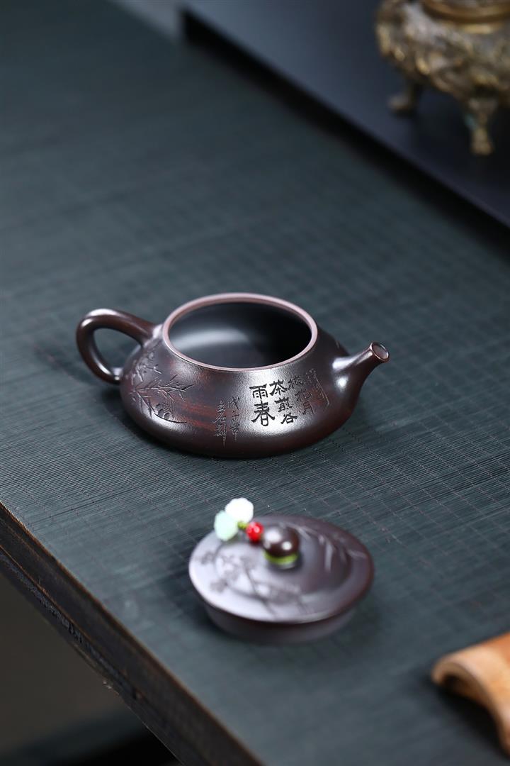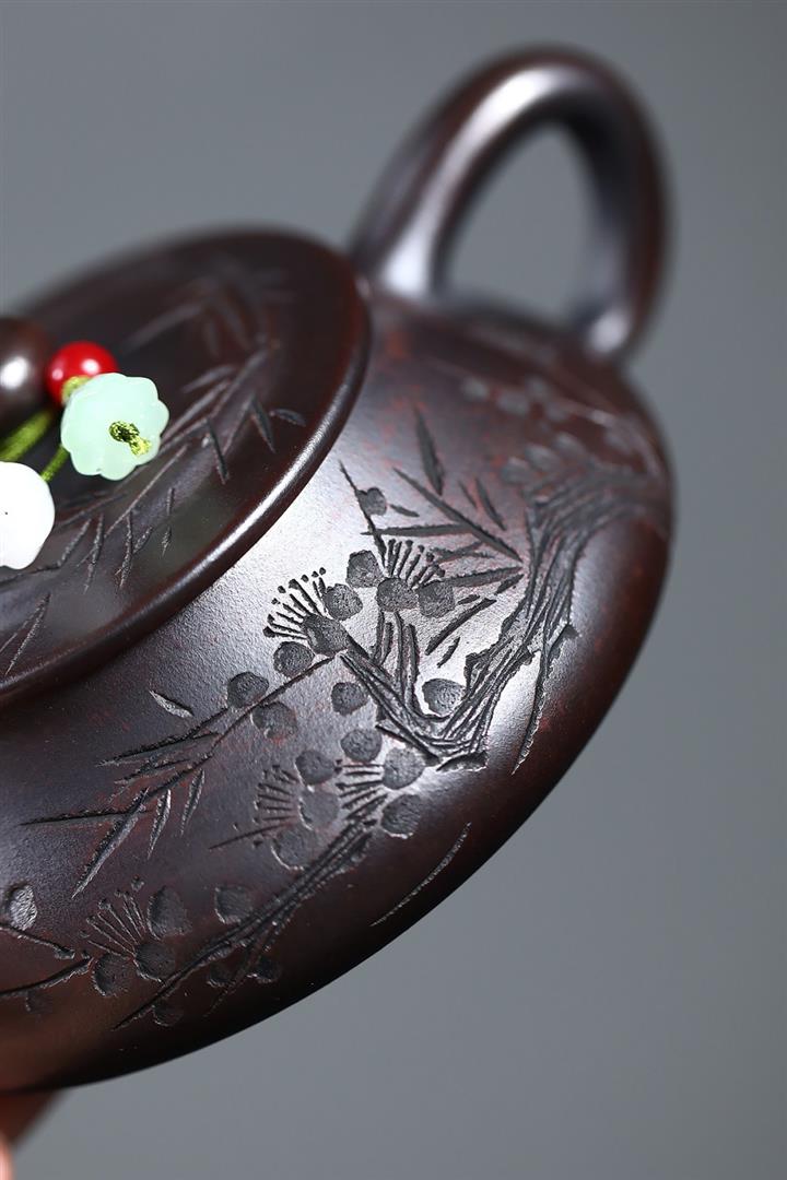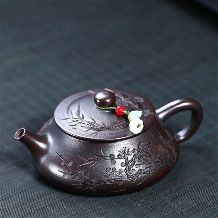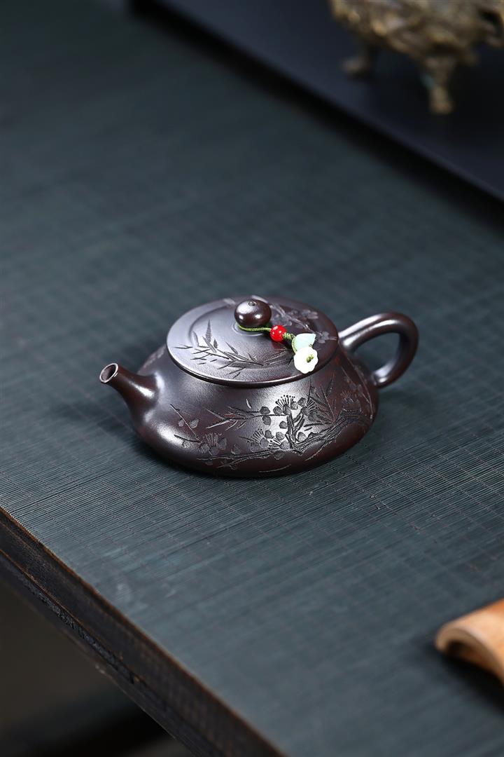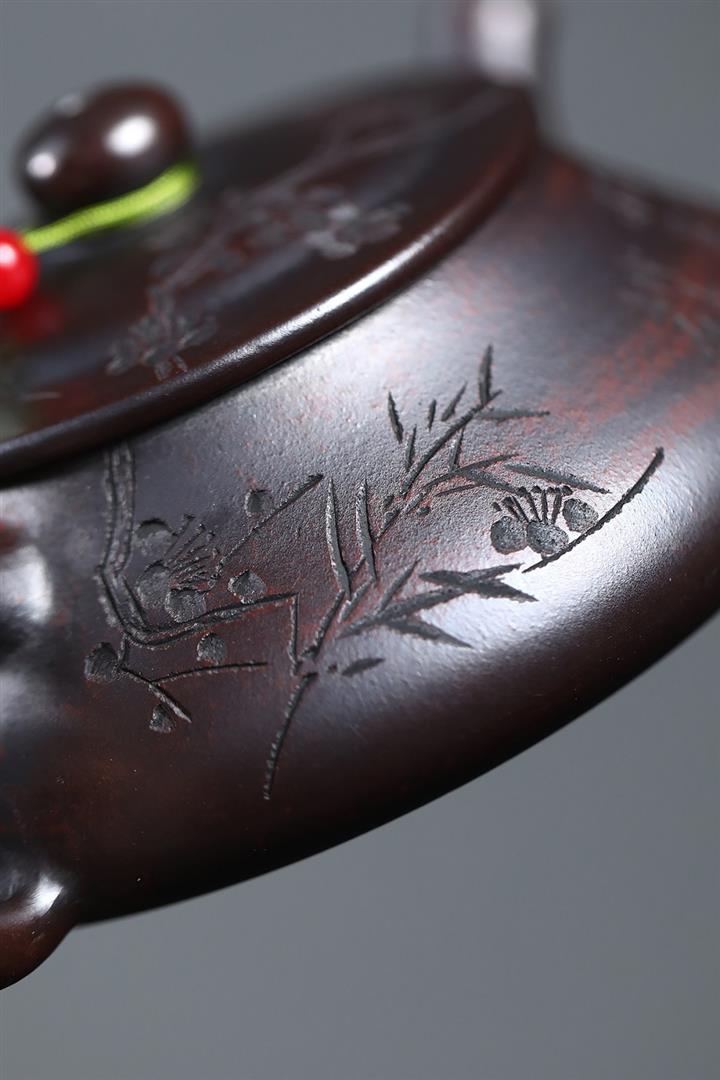 180cc原礦古銅泥梅竹雙清石瓢茶壺POT8749