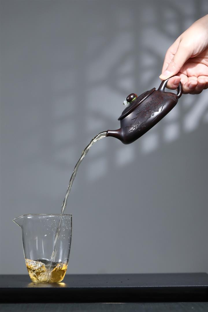 【泥料特點】砂土氣重,似淳實農民,日久使用,漸露鋒芒,養成變化,溫潤莊重。紫砂是壹種雙重氣孔結構的多孔性材質,氣孔微細,密度高。用紫砂壺沏茶,不失原味,且香不渙散,得茶之真香真味。紫砂使用越久,壺身色澤越發光亮照人,氣韻溫雅。紫砂壺長久使用器身會因撫摸擦拭,變得越發溫潤光澤。