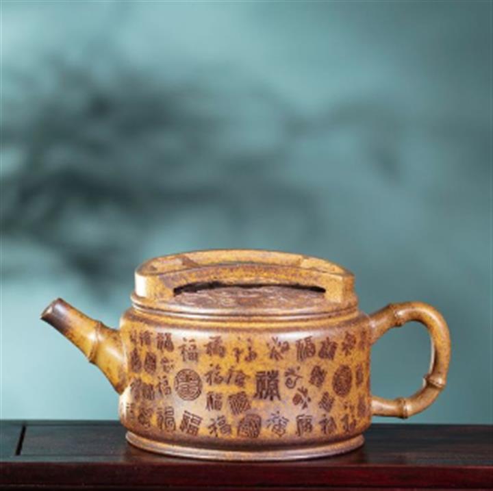 270cc原礦高溫沈香泥柴燒竹影茶壺POT8132