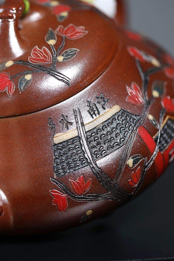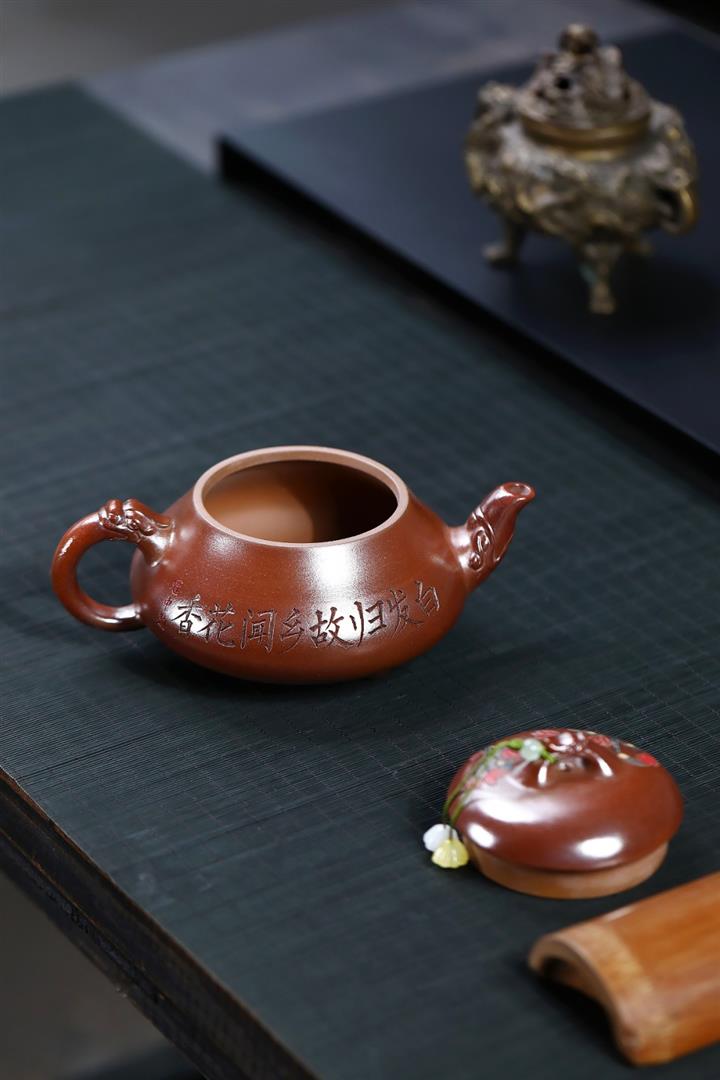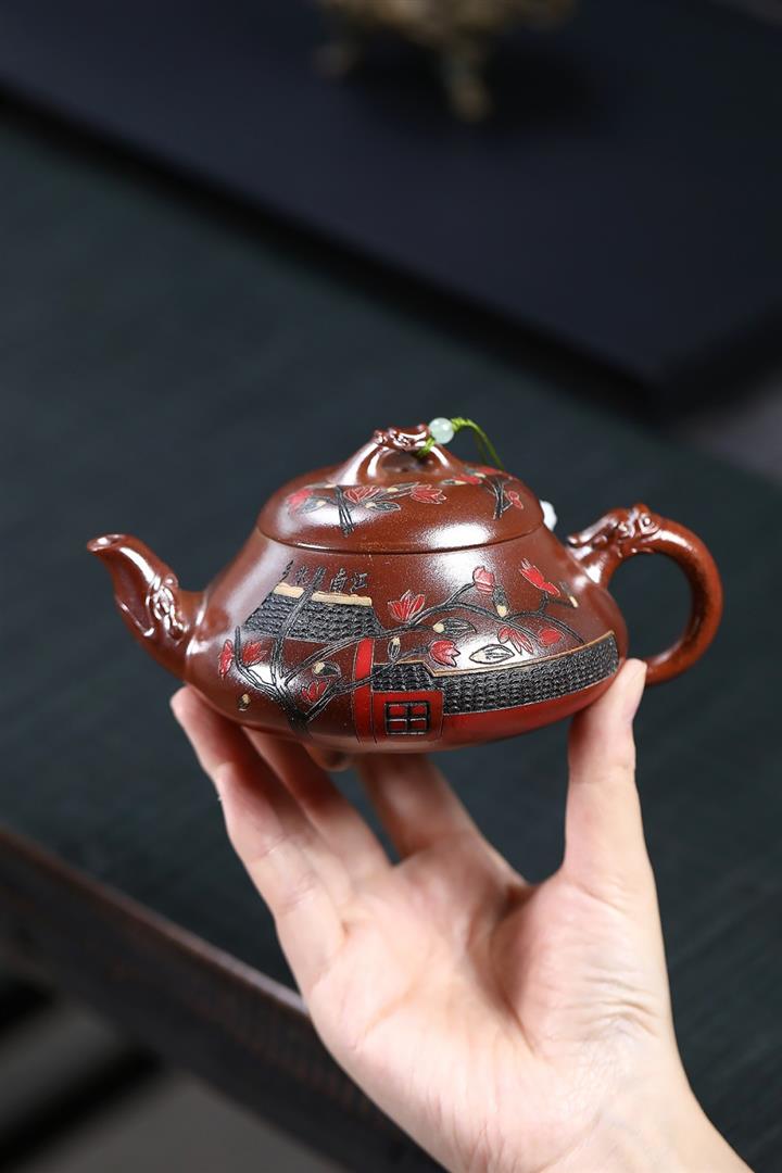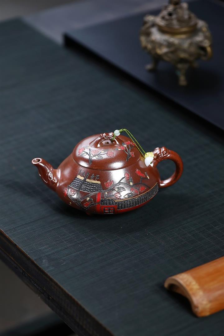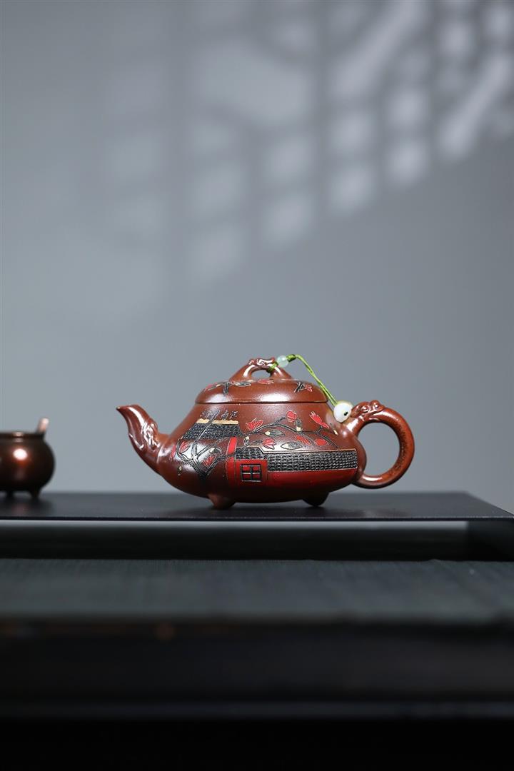 200cc原礦段泥字畫壹片瓦茶壺POT8126