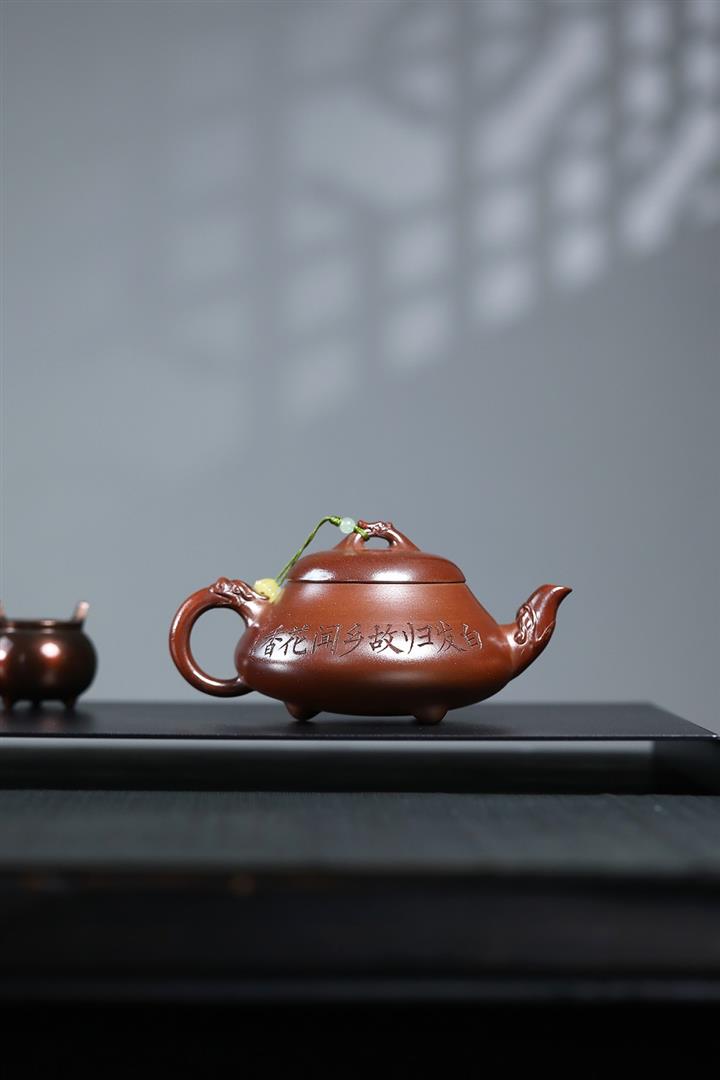 【作品介紹】此款壺形線條流暢,壺把,壺嘴,壺身壹氣呵成栩栩如生,是收藏把玩的好壺,泥料色澤古樸典雅,日久使用,漸露鋒芒,養成變化快,溫潤莊重,用其泡茶,使用的年代久,壺身就溫潤,泡出來的茶湯也就醇郁芳馨。