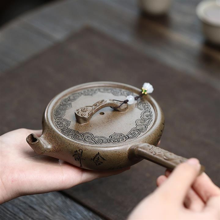 220cc原礦雲霧沈香泥柴燒如意唐羽側把茶壺POT8772