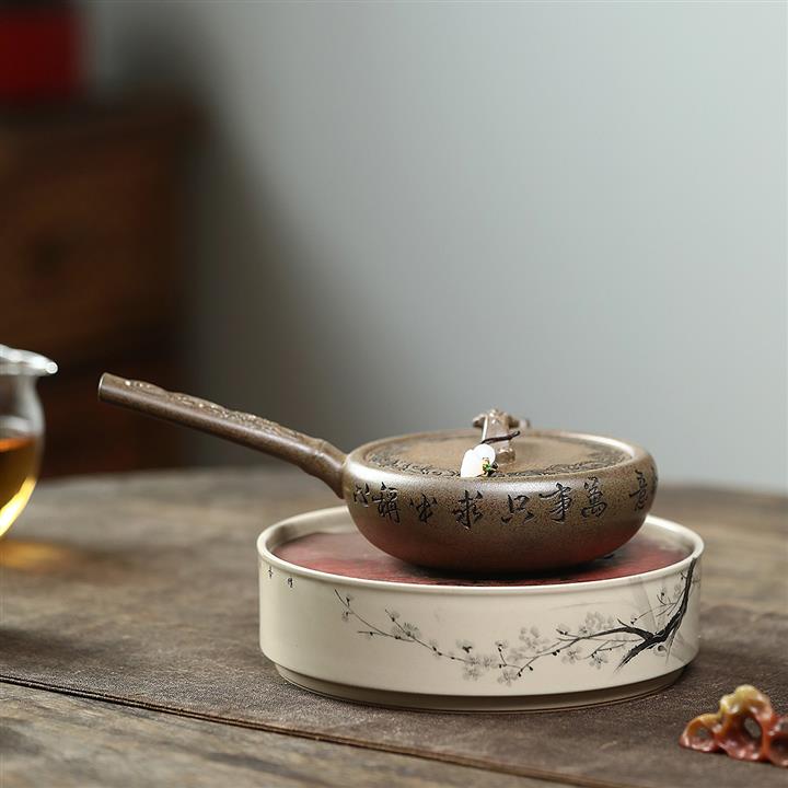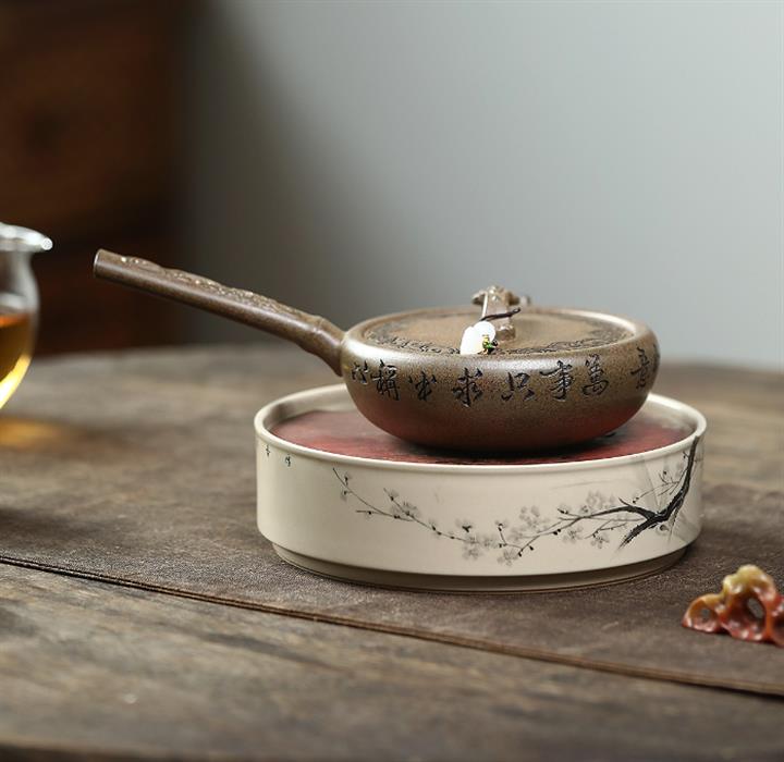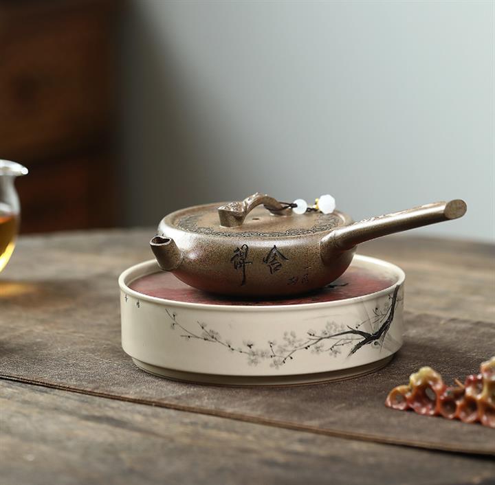 【泥料特點】砂土氣重,似淳實農民,日久使用,漸露鋒芒,養成變化,溫潤莊重。紫砂是壹種雙重氣孔結構的多孔性材質,氣孔微細,密度高。用紫砂壺沏茶,不失原味,且香不渙散,得茶之真香真味。紫砂使用越久,壺身色澤越發光亮照人,氣韻溫雅。紫砂壺長久使用器身會因撫摸擦拭,變得越發溫潤光澤。