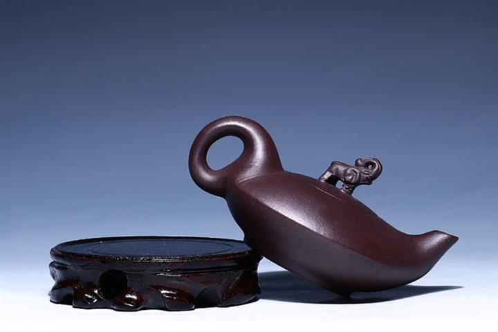 原礦赤金朱泥三足乳瓢茶壺POT6606