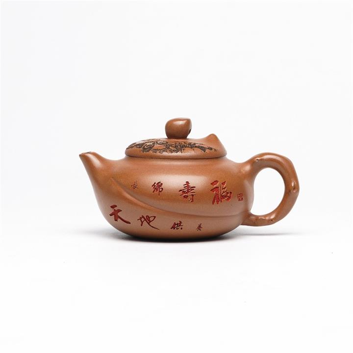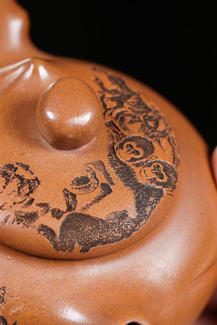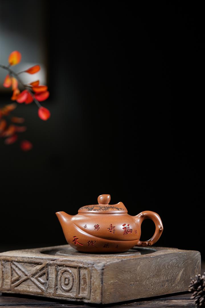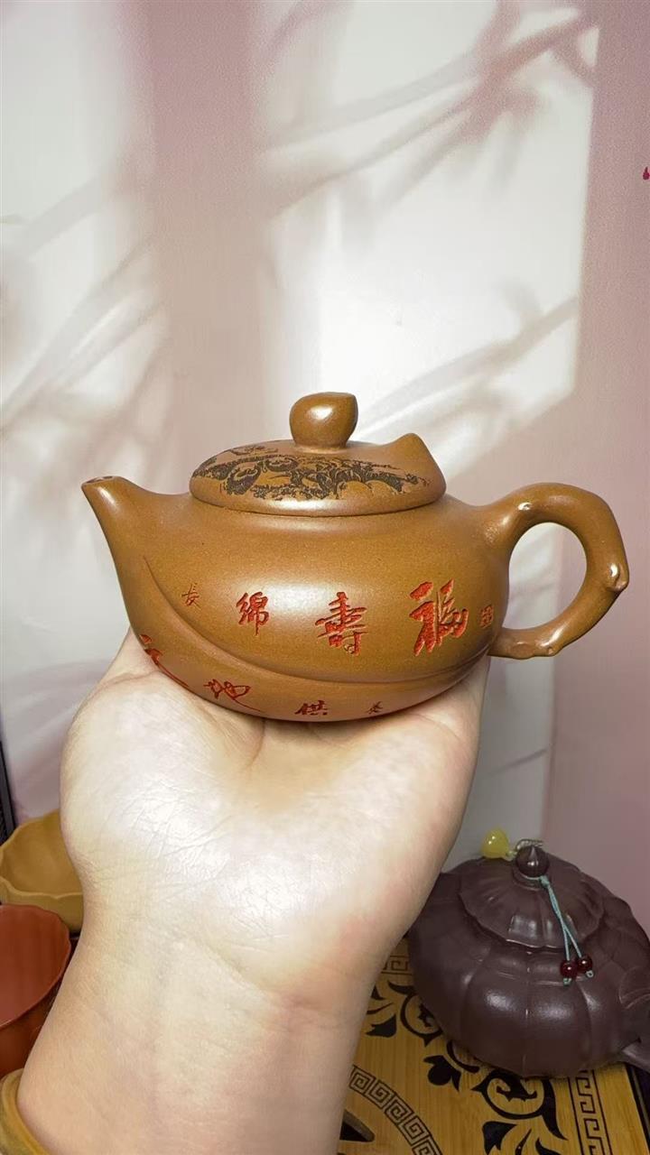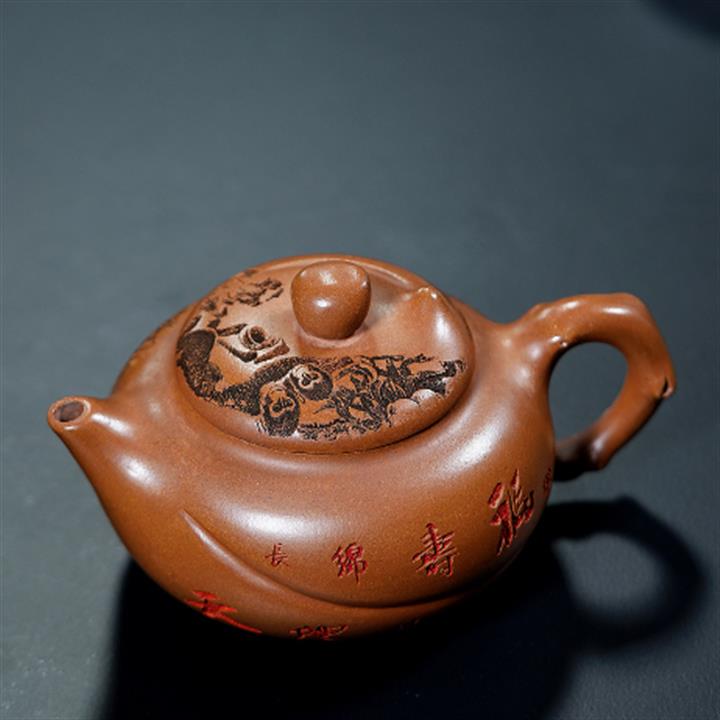 紫砂壺手工福壽吉祥珍藏陳腐老紫泥pot3905