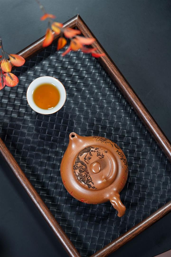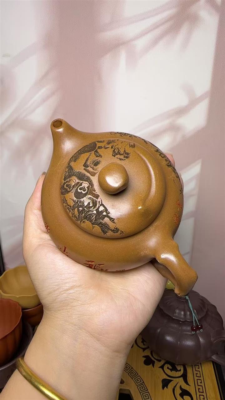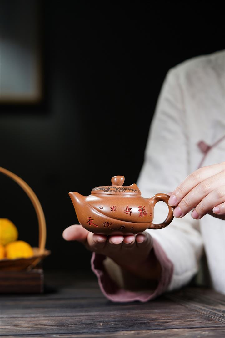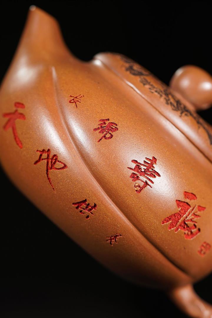 紫砂壺手工福壽吉祥珍藏陳腐老紫泥pot3905