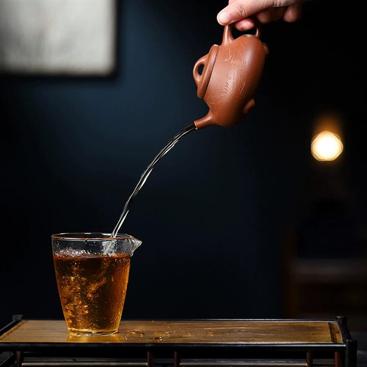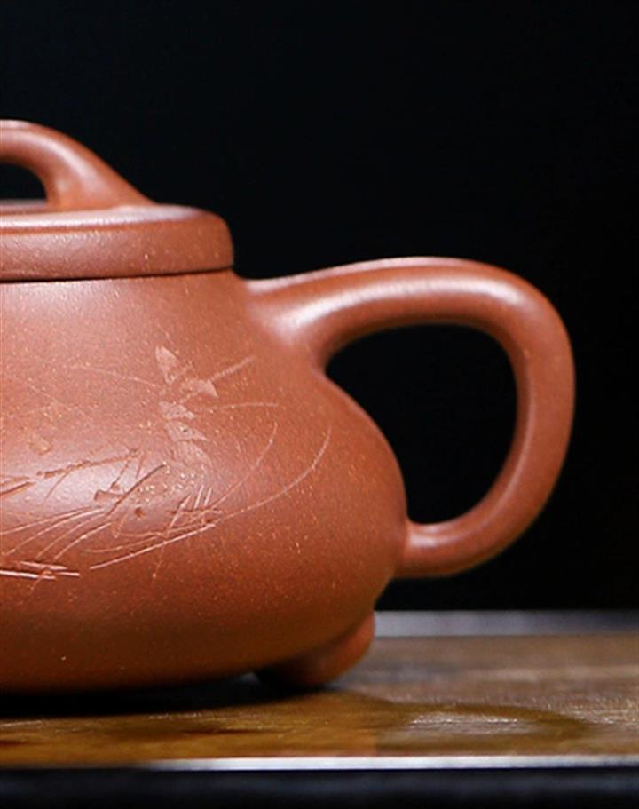 【泥料特點】砂土氣重,似淳實農民,日久使用,漸露鋒芒,養成變化,溫潤莊重。紫砂是壹種雙重氣孔結構的多孔性材質,氣孔微細,密度高。用紫砂壺沏茶,不失原味,且香不渙散,得茶之真香真味。紫砂使用越久,壺身色澤越發光亮照人,氣韻溫雅。紫砂壺長久使用器身會因撫摸擦拭,變得越發溫潤光澤。