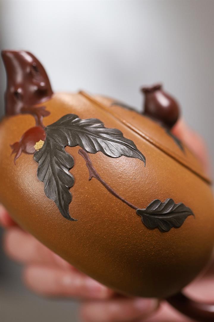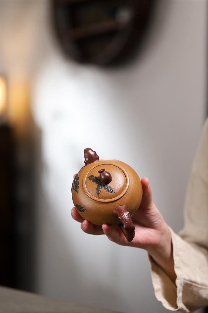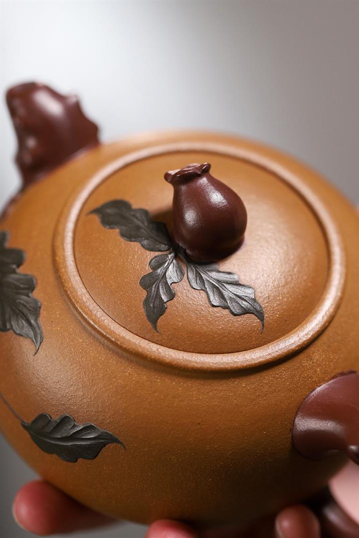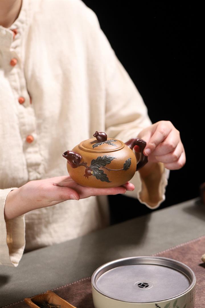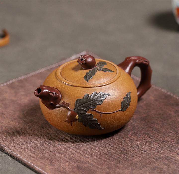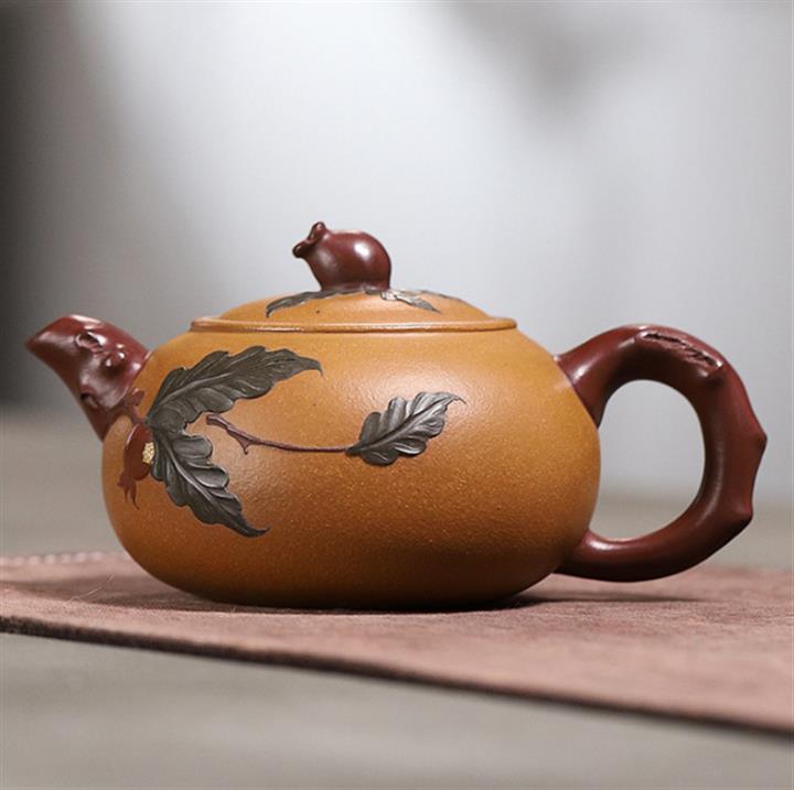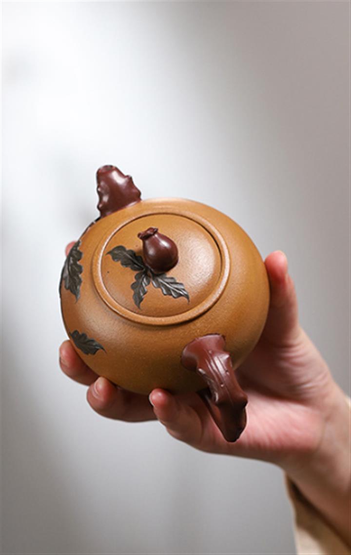300cc原礦黃金段泥/綠泥多福多子茶壺POT8803