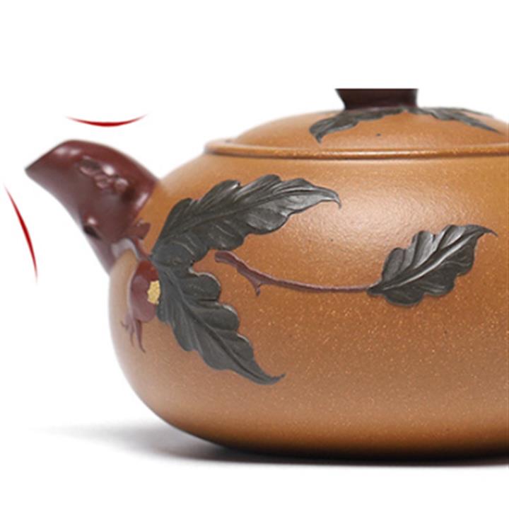 【作品介紹】此款壺形線條流暢,壺把,壺嘴,壺身壹氣呵成栩栩如生,是收藏把玩的好壺,泥料色澤古樸典雅,日久使用,漸露鋒芒,養成變化快,溫潤莊重,用其泡茶,使用的年代久,壺身就溫潤,泡出來的茶湯也就醇郁芳馨。