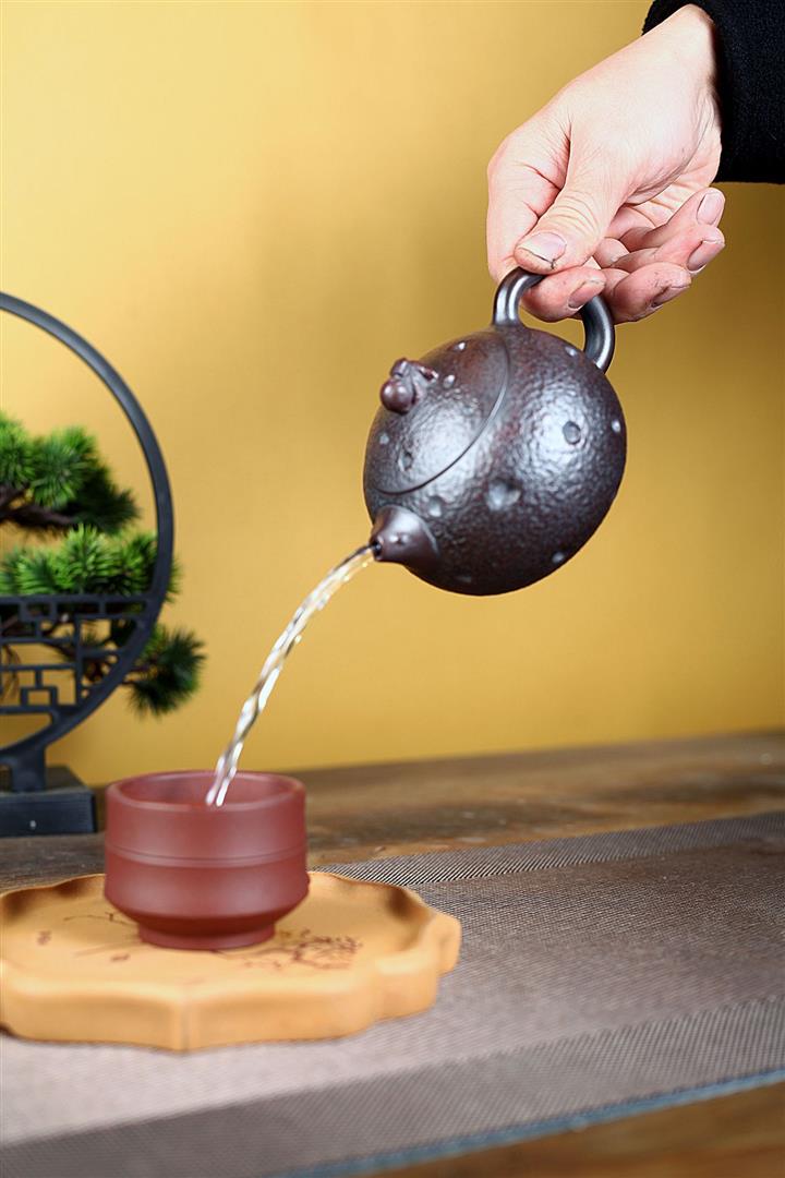 【泥料特點】砂土氣重,似淳實農民,日久使用,漸露鋒芒,養成變化,溫潤莊重。紫砂是壹種雙重氣孔結構的多孔性材質,氣孔微細,密度高。用紫砂壺沏茶,不失原味,且香不渙散,得茶之真香真味。紫砂使用越久,壺身色澤越發光亮照人,氣韻溫雅。紫砂壺長久使用器身會因撫摸擦拭,變得越發溫潤光澤。
