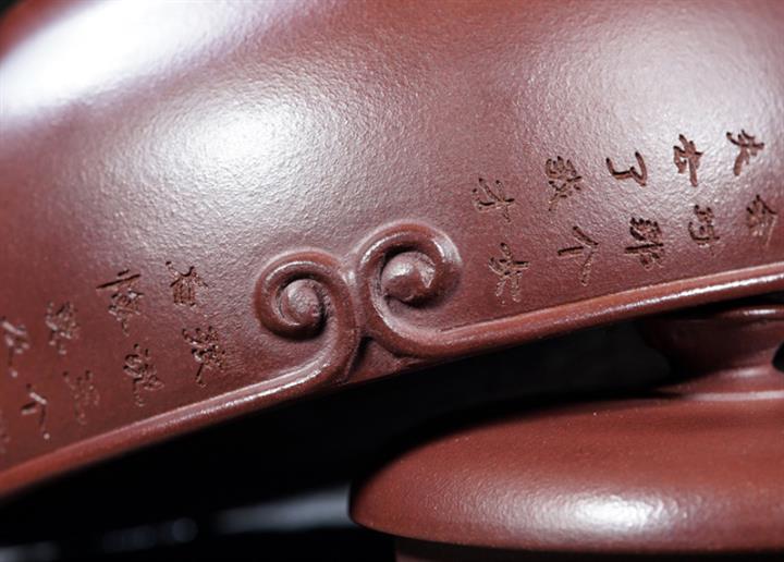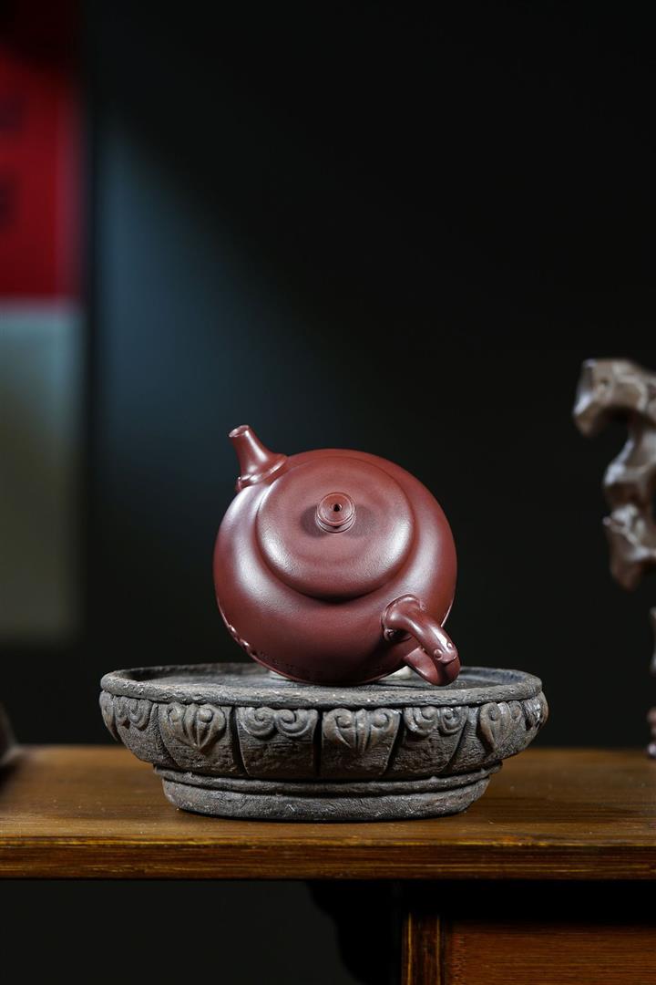 朱泥捂灰金龜換酒手工描金紫砂壺POT6500