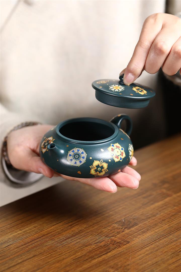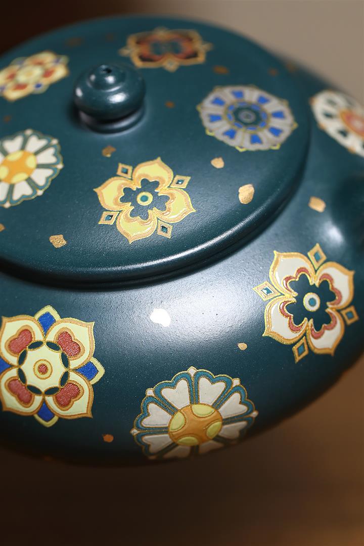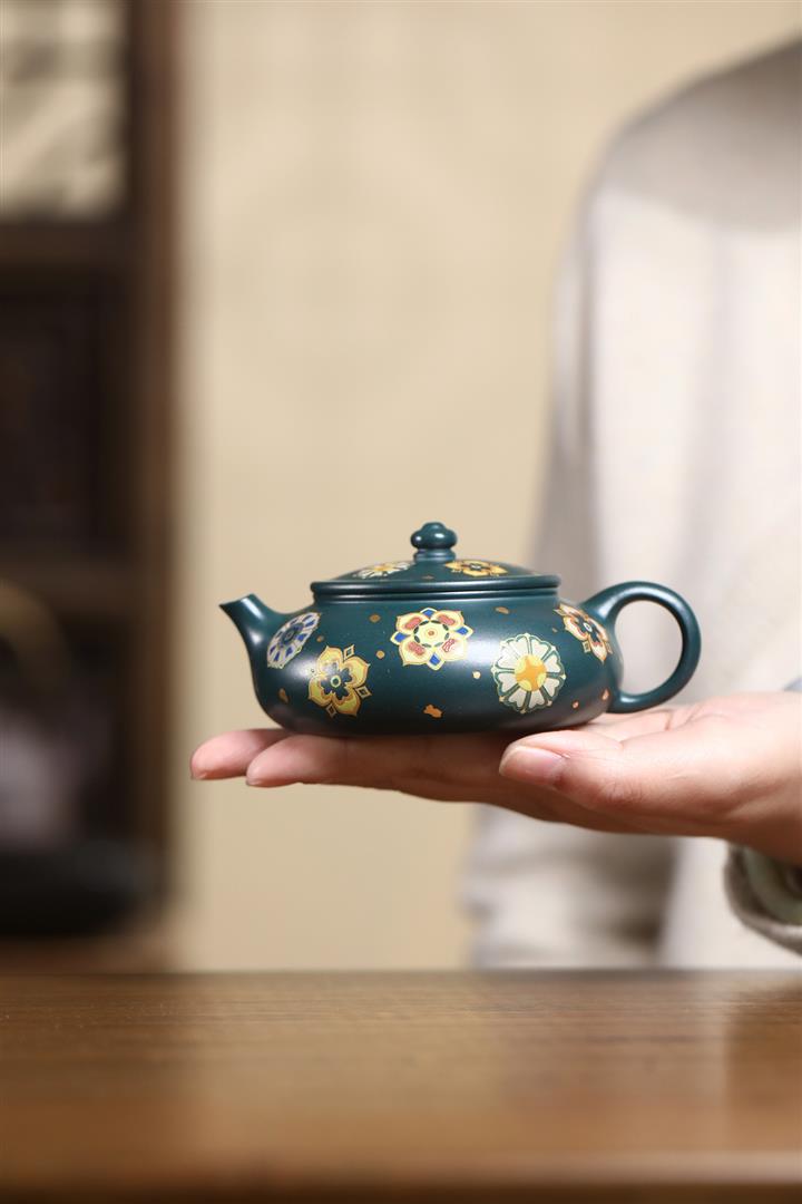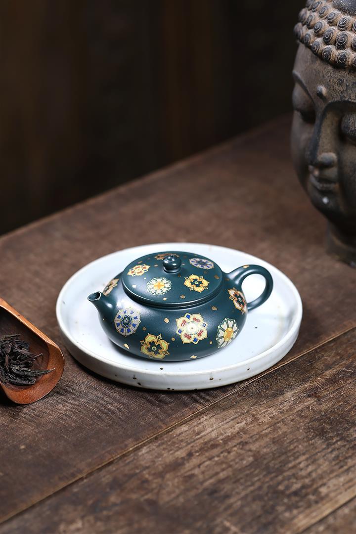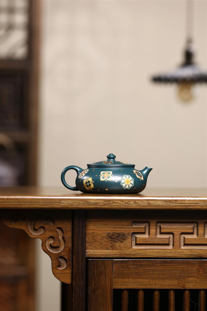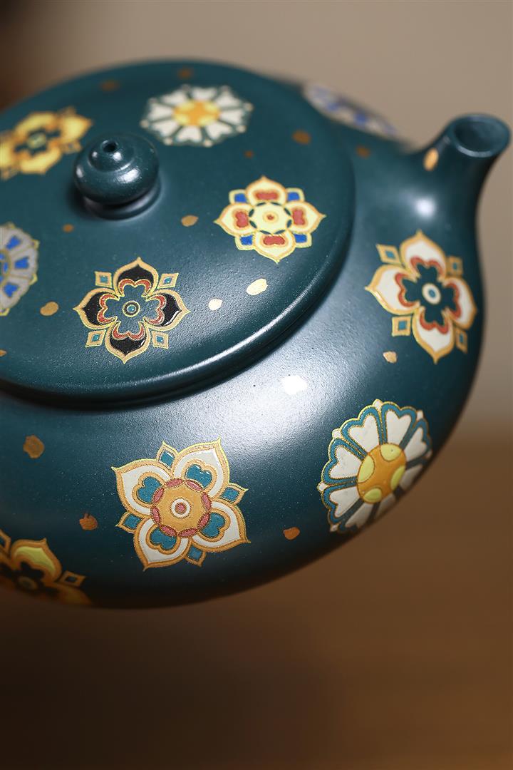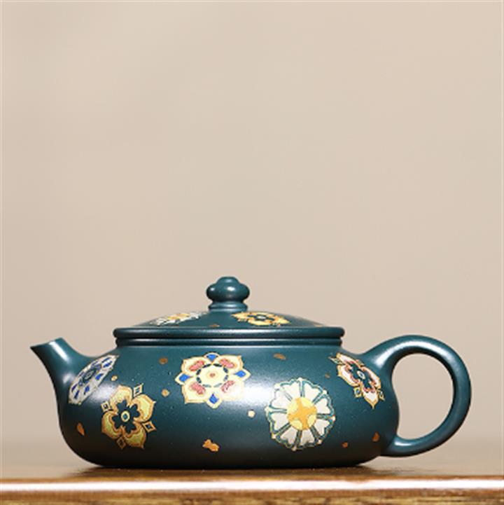 160cc翡翠綠泥描金寶相花-寒江茶壺POT8811