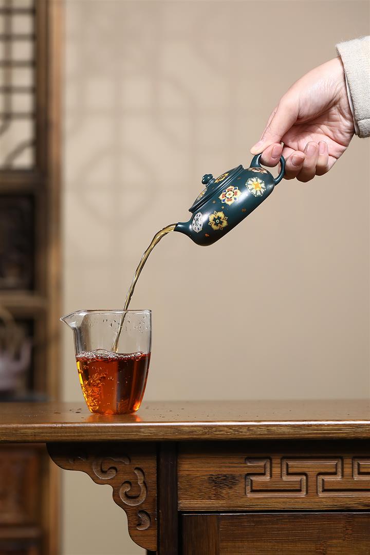 【泥料特點】砂土氣重,似淳實農民,日久使用,漸露鋒芒,養成變化,溫潤莊重。紫砂是壹種雙重氣孔結構的多孔性材質,氣孔微細,密度高。用紫砂壺沏茶,不失原味,且香不渙散,得茶之真香真味。紫砂使用越久,壺身色澤越發光亮照人,氣韻溫雅。紫砂壺長久使用器身會因撫摸擦拭,變得越發溫潤光澤。