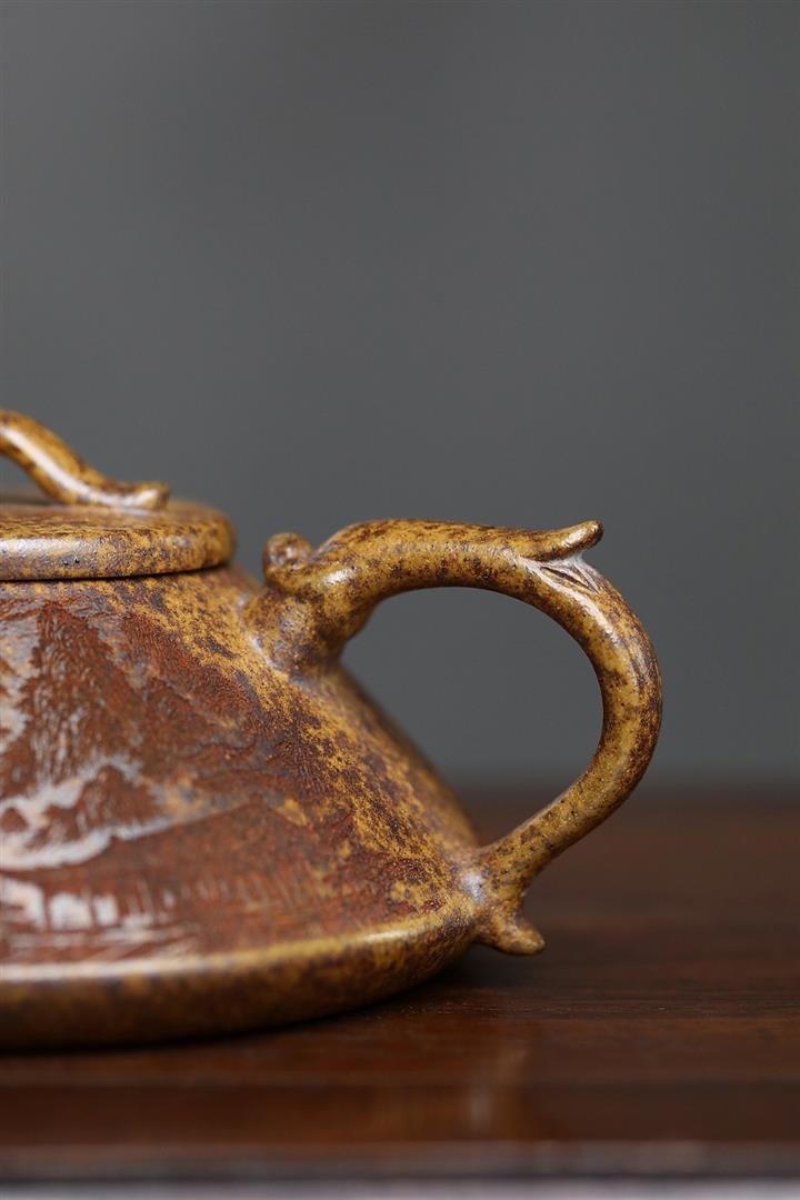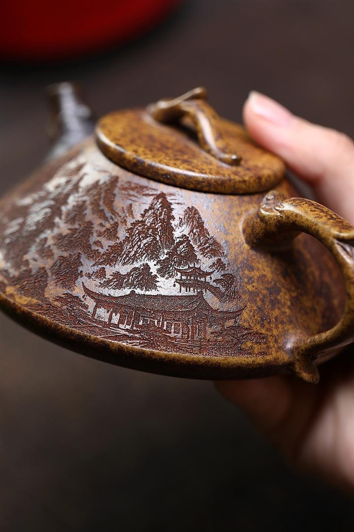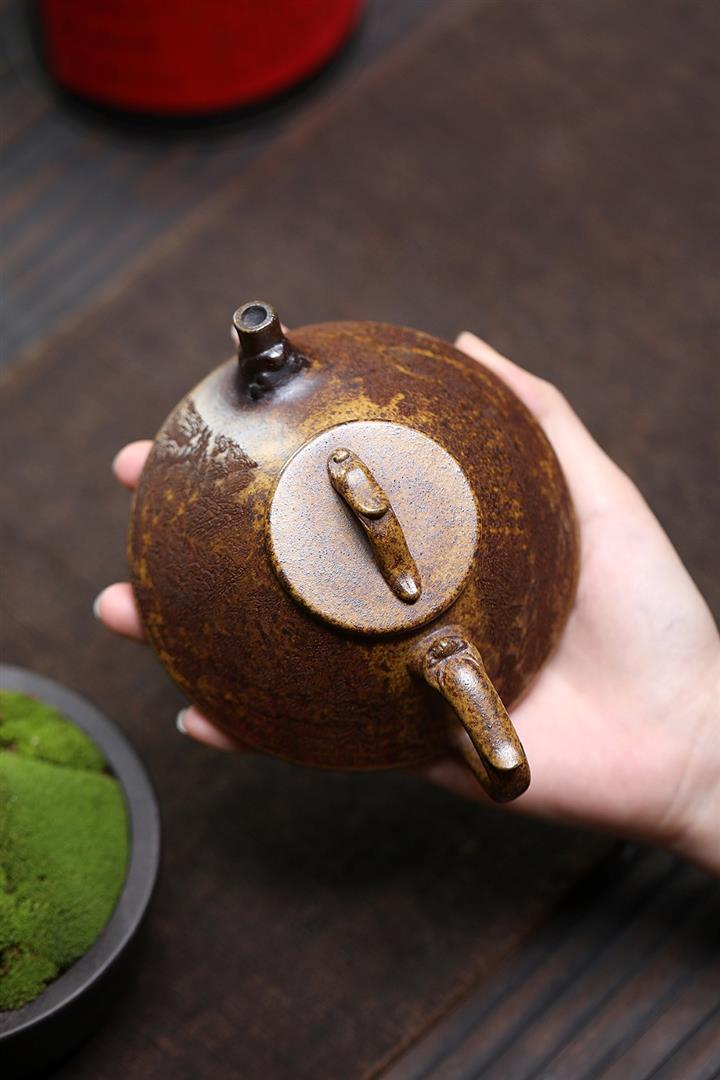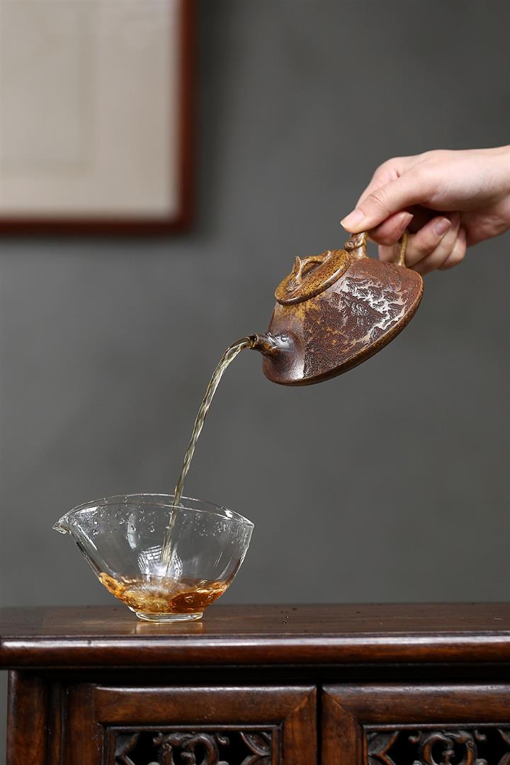 【泥料特點】砂土氣重,似淳實農民,日久使用,漸露鋒芒,養成變化,溫潤莊重。紫砂是壹種雙重氣孔結構的多孔性材質,氣孔微細,密度高。用紫砂壺沏茶,不失原味,且香不渙散,得茶之真香真味。紫砂使用越久,壺身色澤越發光亮照人,氣韻溫雅。紫砂壺長久使用器身會因撫摸擦拭,變得越發溫潤光澤。