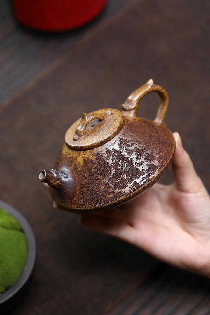 【作品介紹】此款壺形線條流暢,壺把,壺嘴,壺身壹氣呵成栩栩如生,是收藏把玩的好壺,泥料色澤古樸典雅,日久使用,漸露鋒芒,養成變化快,溫潤莊重,用其泡茶,使用的年代久,壺身就溫潤,泡出來的茶湯也就醇郁芳馨。