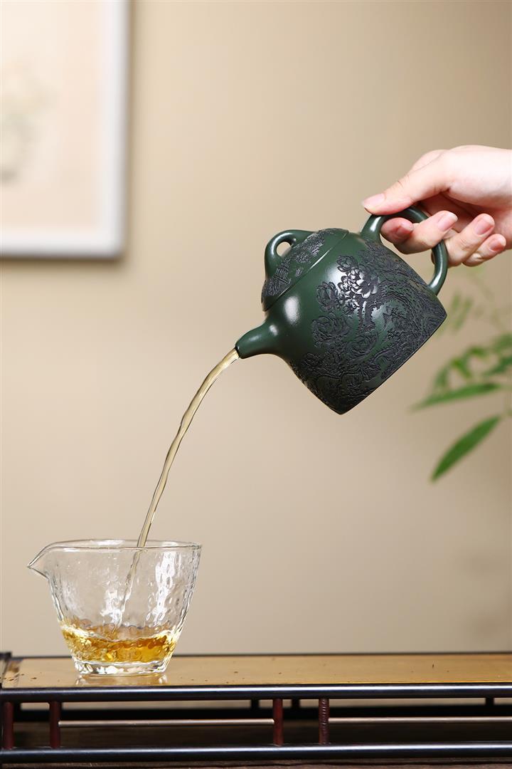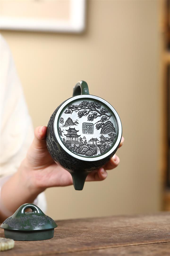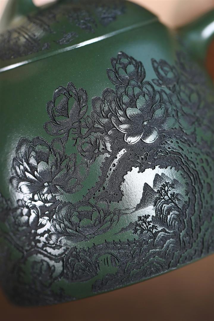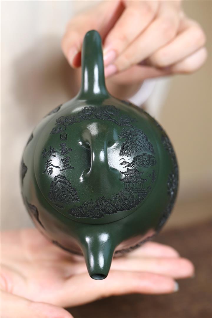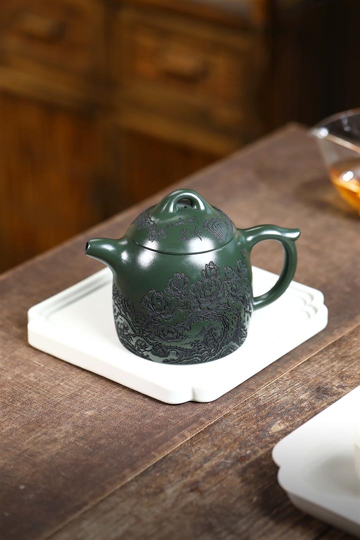 手工刻繪德鐘壺原礦青段泥紫砂壺POT4204