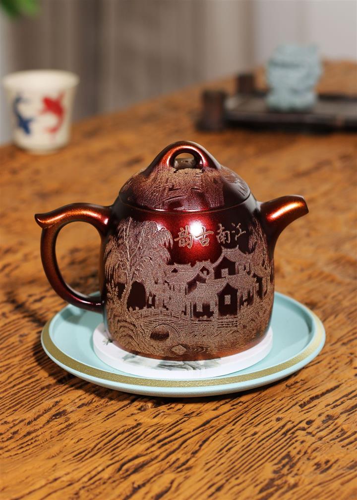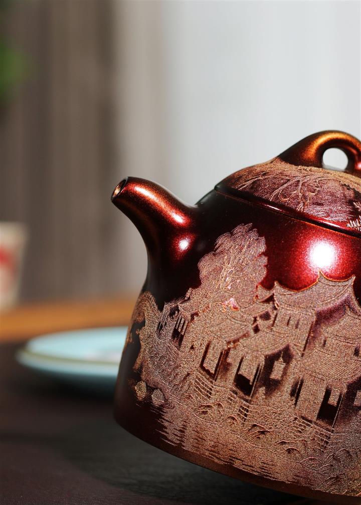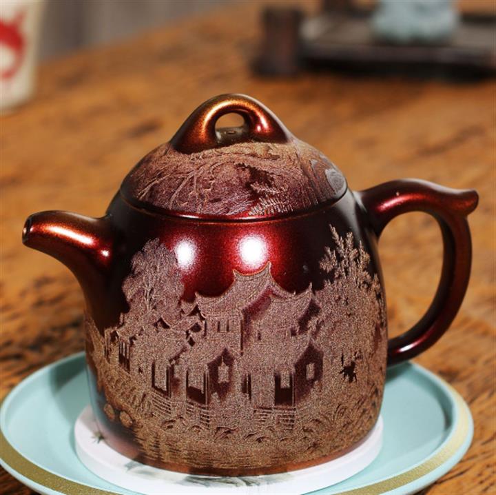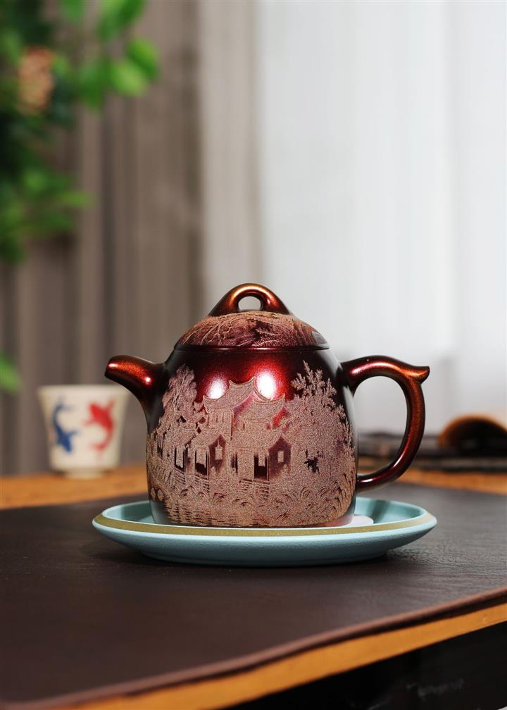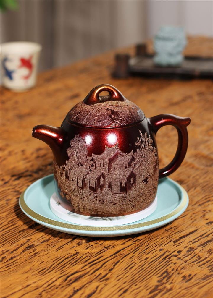 原礦龍血砂手工滿刻蒼松茶壺POT7143