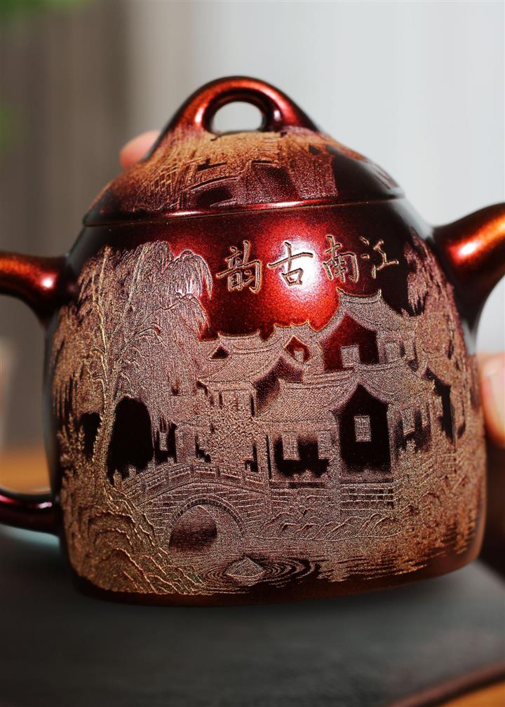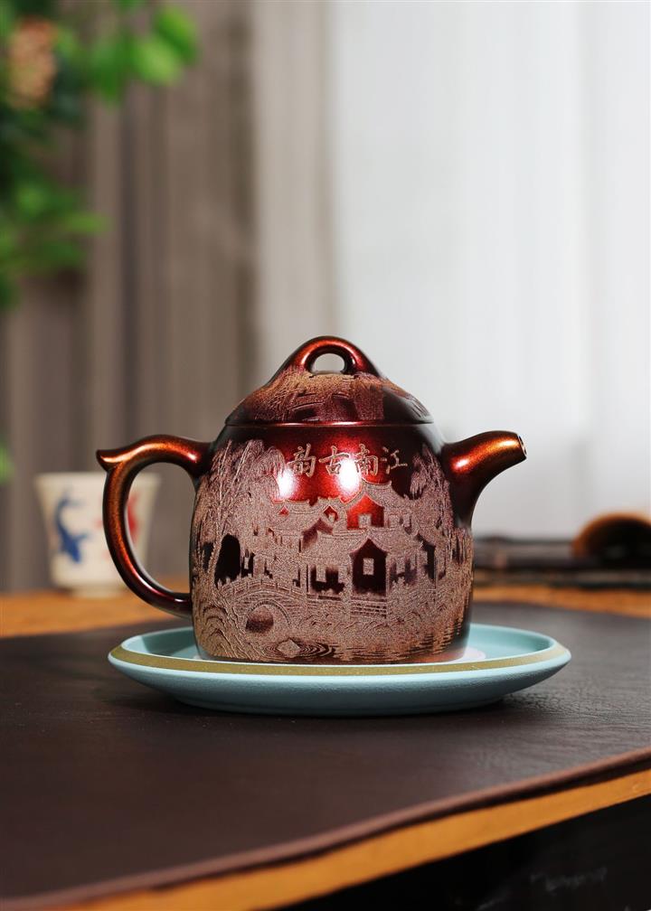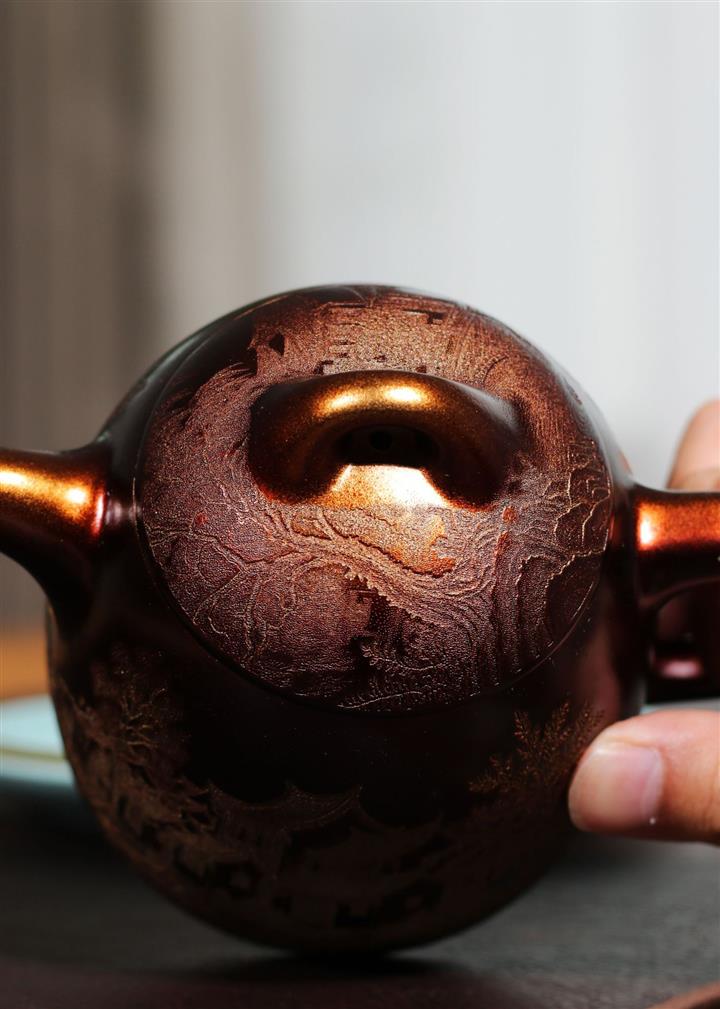 原礦龍骨金砂江山如畫漢瓦茶壺POT7142
