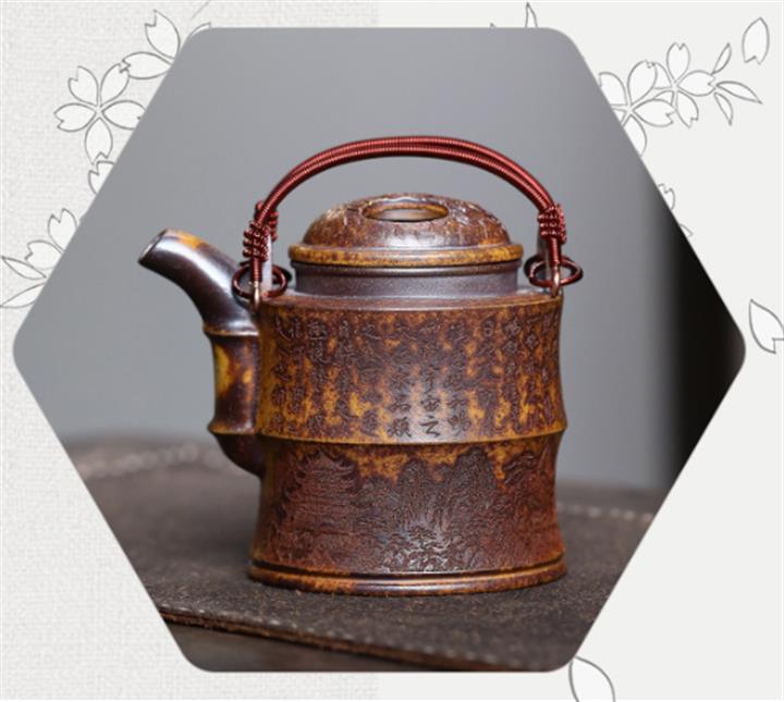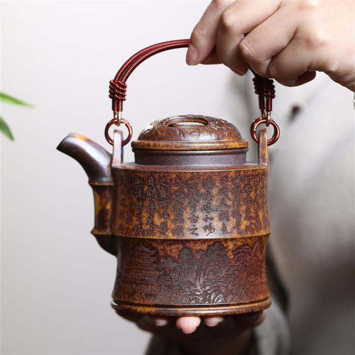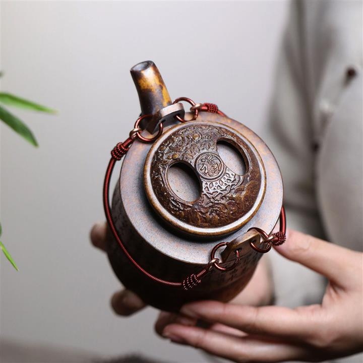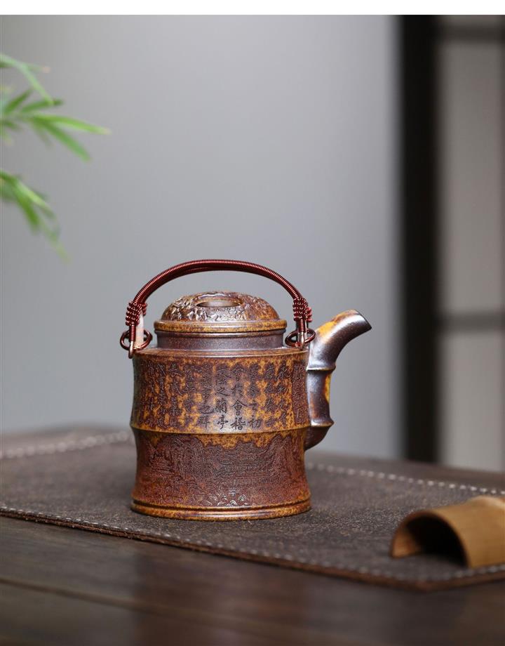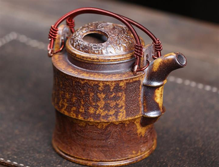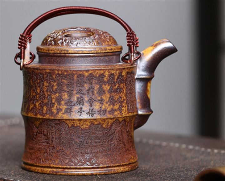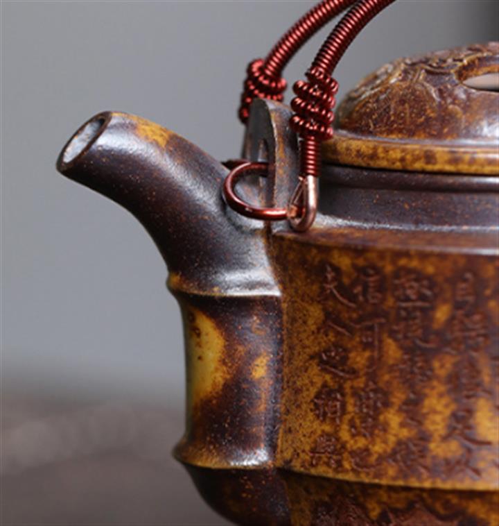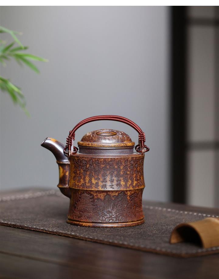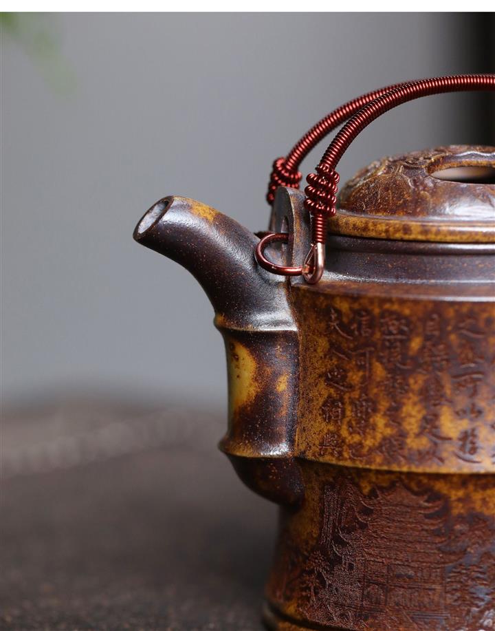 500cc特高溫龍窯柴燒龍骨金砂竹節洋桶茶壺POT8827