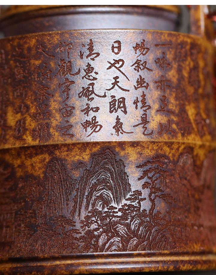 【作品介紹】此款壺形線條流暢,壺把,壺嘴,壺身壹氣呵成栩栩如生,是收藏把玩的好壺,泥料色澤古樸典雅,日久使用,漸露鋒芒,養成變化快,溫潤莊重,用其泡茶,使用的年代久,壺身就溫潤,泡出來的茶湯也就醇郁芳馨。