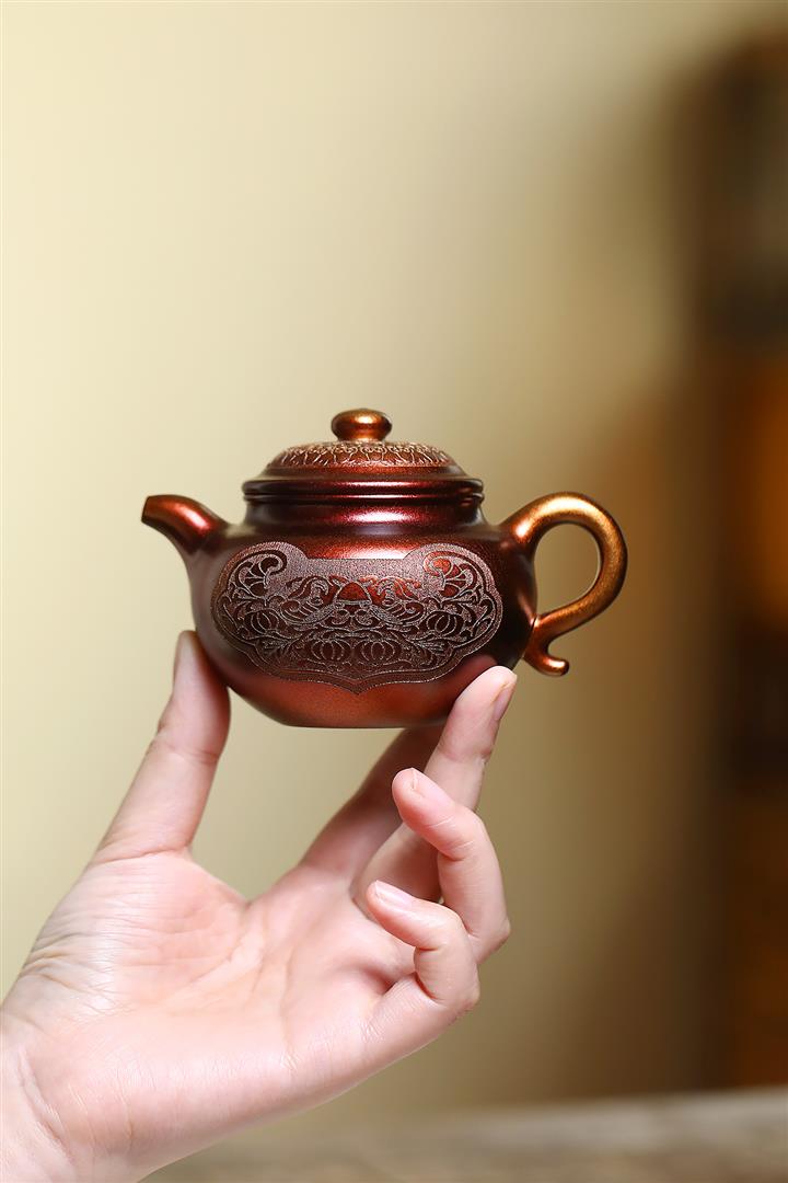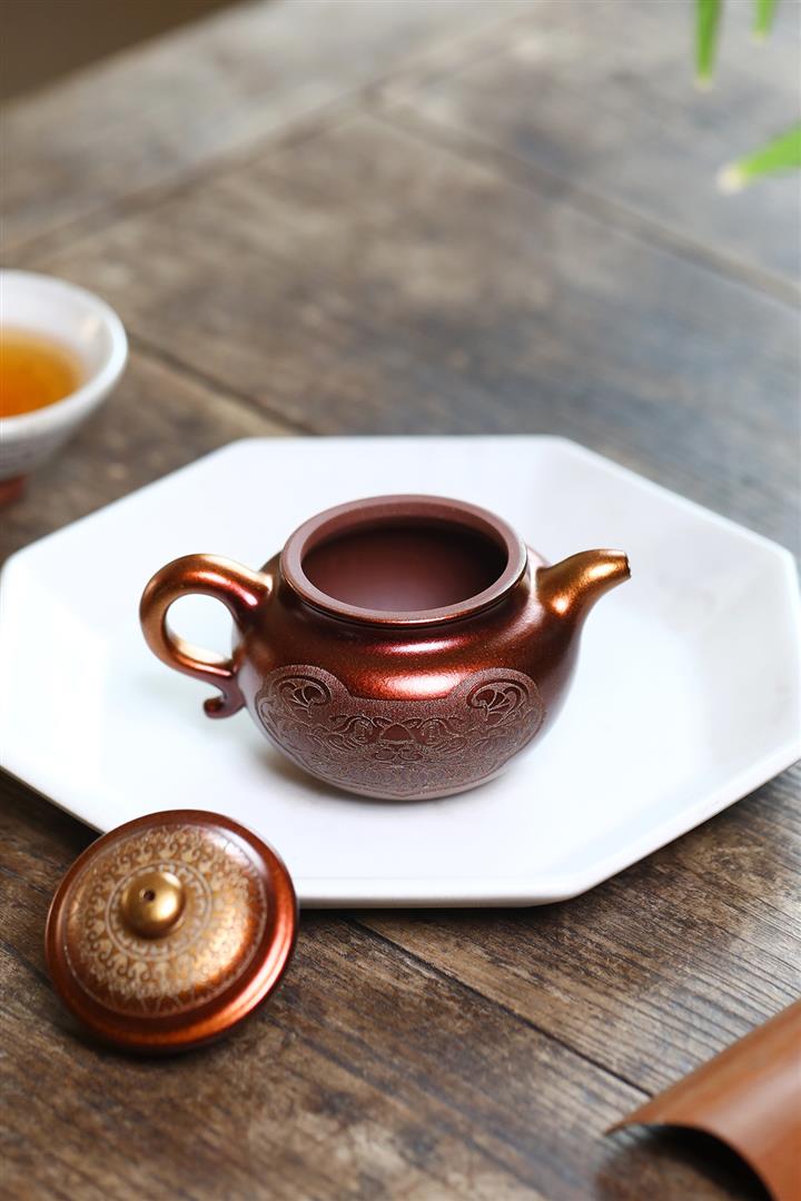 原礦石黃料茶道漢瓦紫砂壺POT4673