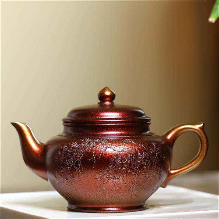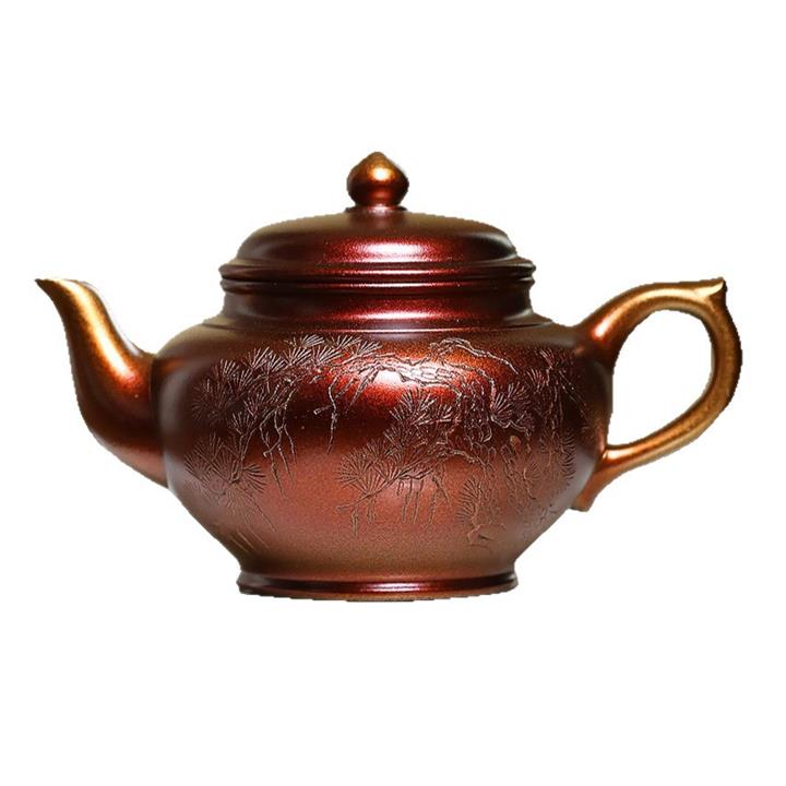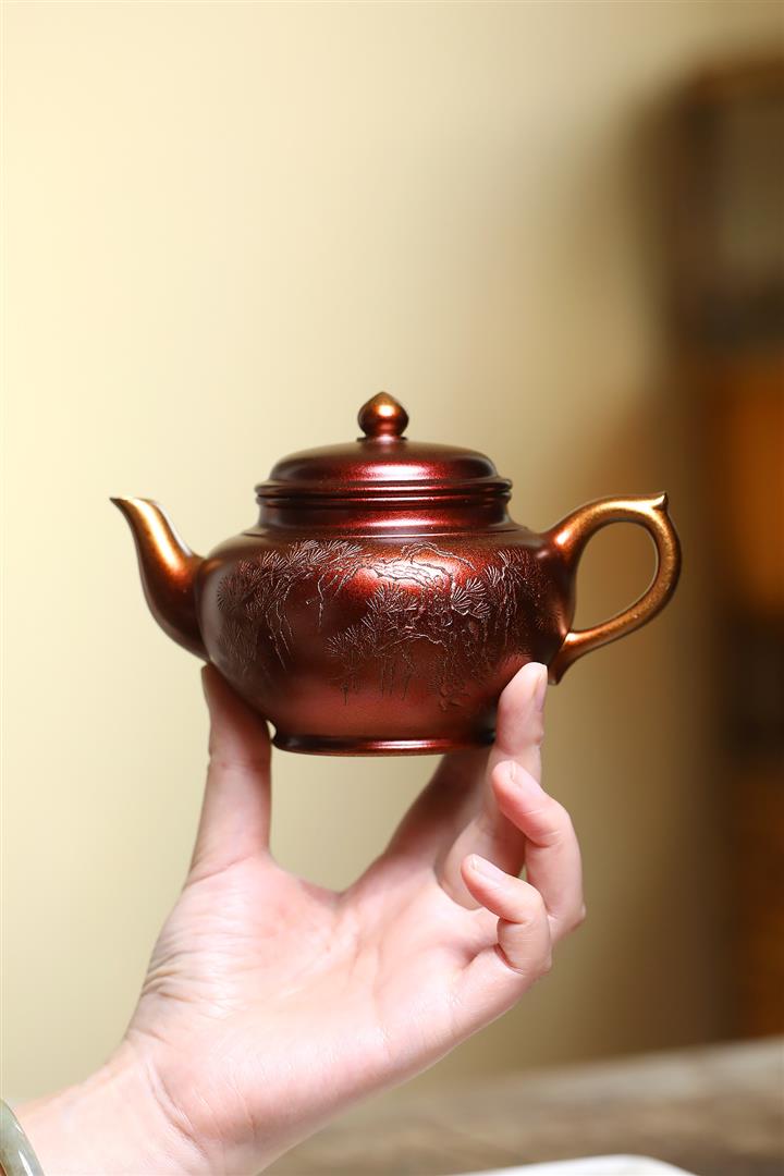280cc原礦綠泥滿刻竹林松濤秦權茶壺POT8552