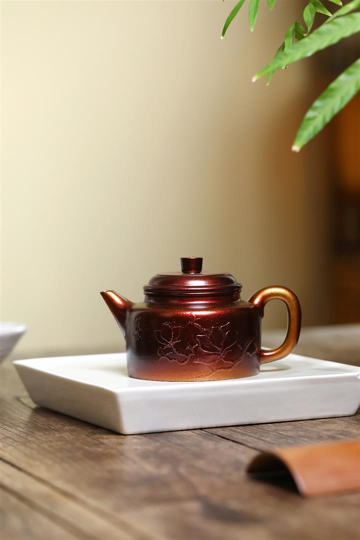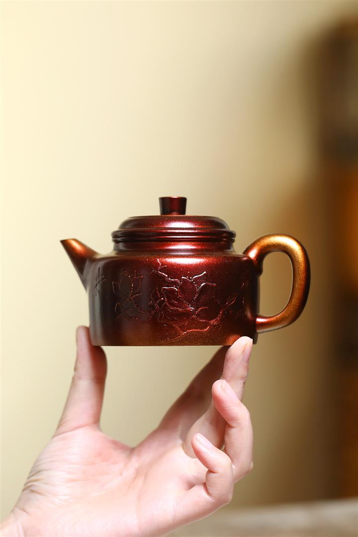 原礦高溫柴燒沈香泥牡丹尊方茶壺POT6634