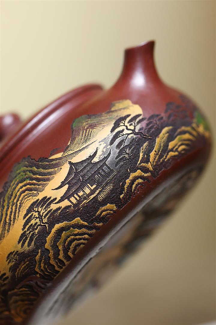 220cc原礦紫泥樓宇山川茶壺POT8841