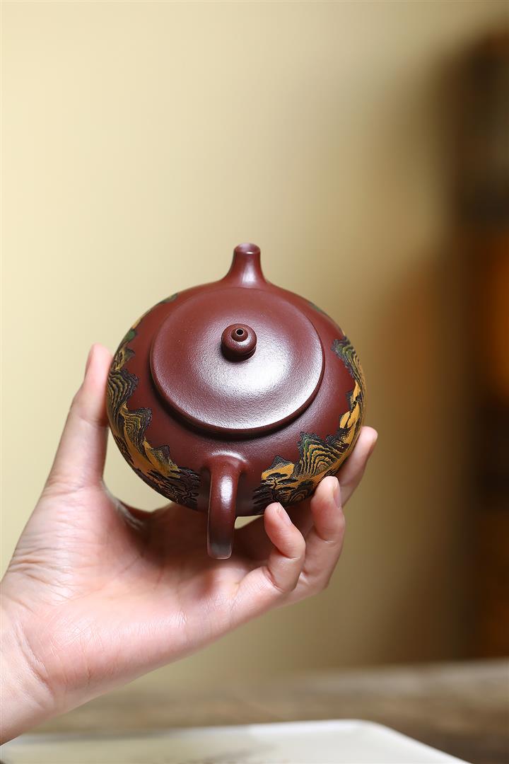 【作品介紹】此款壺形線條流暢,壺把,壺嘴,壺身壹氣呵成栩栩如生,是收藏把玩的好壺,泥料色澤古樸典雅,日久使用,漸露鋒芒,養成變化快,溫潤莊重,用其泡茶,使用的年代久,壺身就溫潤,泡出來的茶湯也就醇郁芳馨。