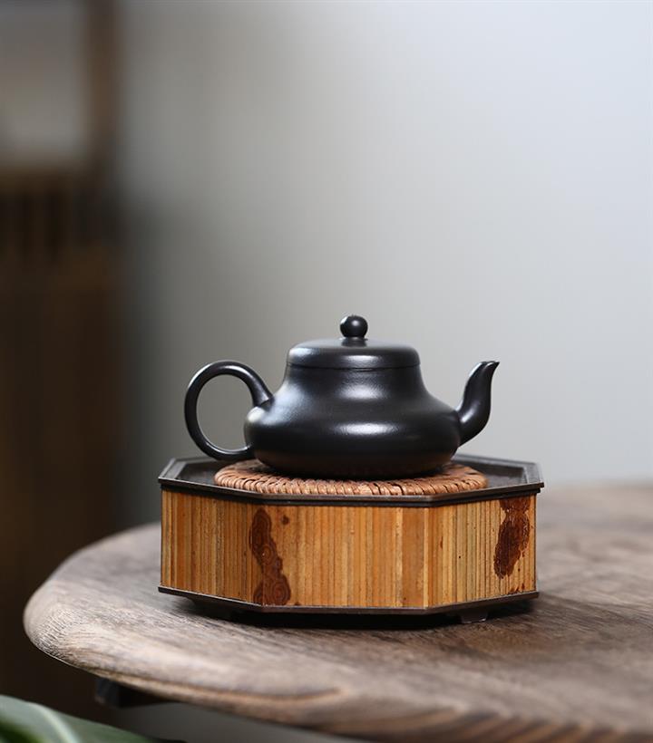 原礦紫泥六方宮燈提梁壺POT7486