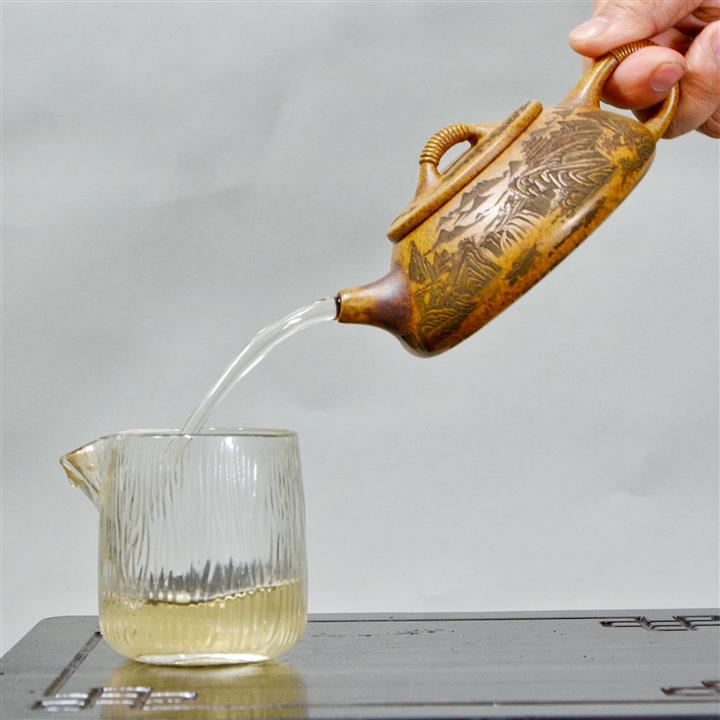 【泥料特點】砂土氣重,似淳實農民,日久使用,漸露鋒芒,養成變化,溫潤莊重。紫砂是壹種雙重氣孔結構的多孔性材質,氣孔微細,密度高。用紫砂壺沏茶,不失原味,且香不渙散,得茶之真香真味。紫砂使用越久,壺身色澤越發光亮照人,氣韻溫雅。紫砂壺長久使用器身會因撫摸擦拭,變得越發溫潤光澤。